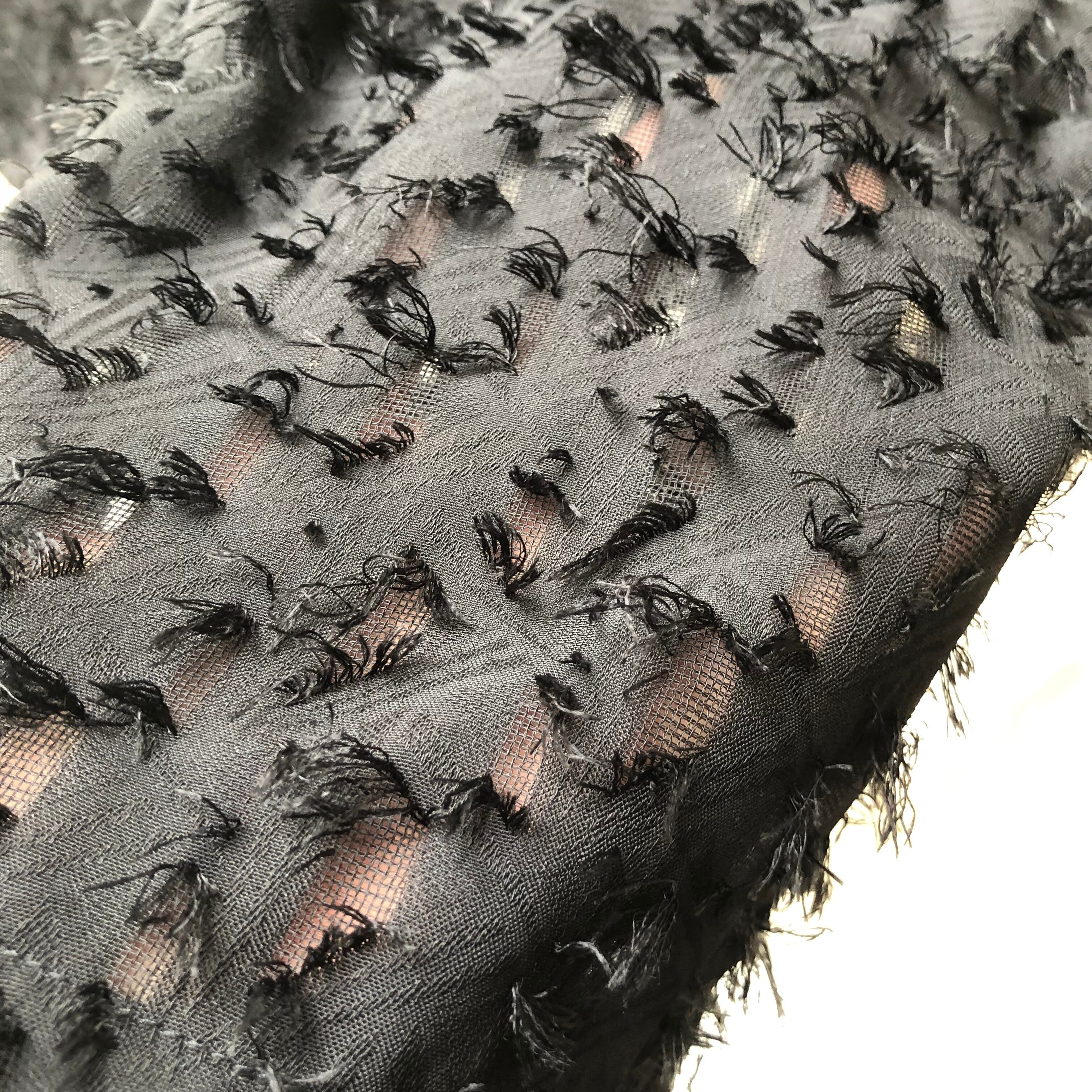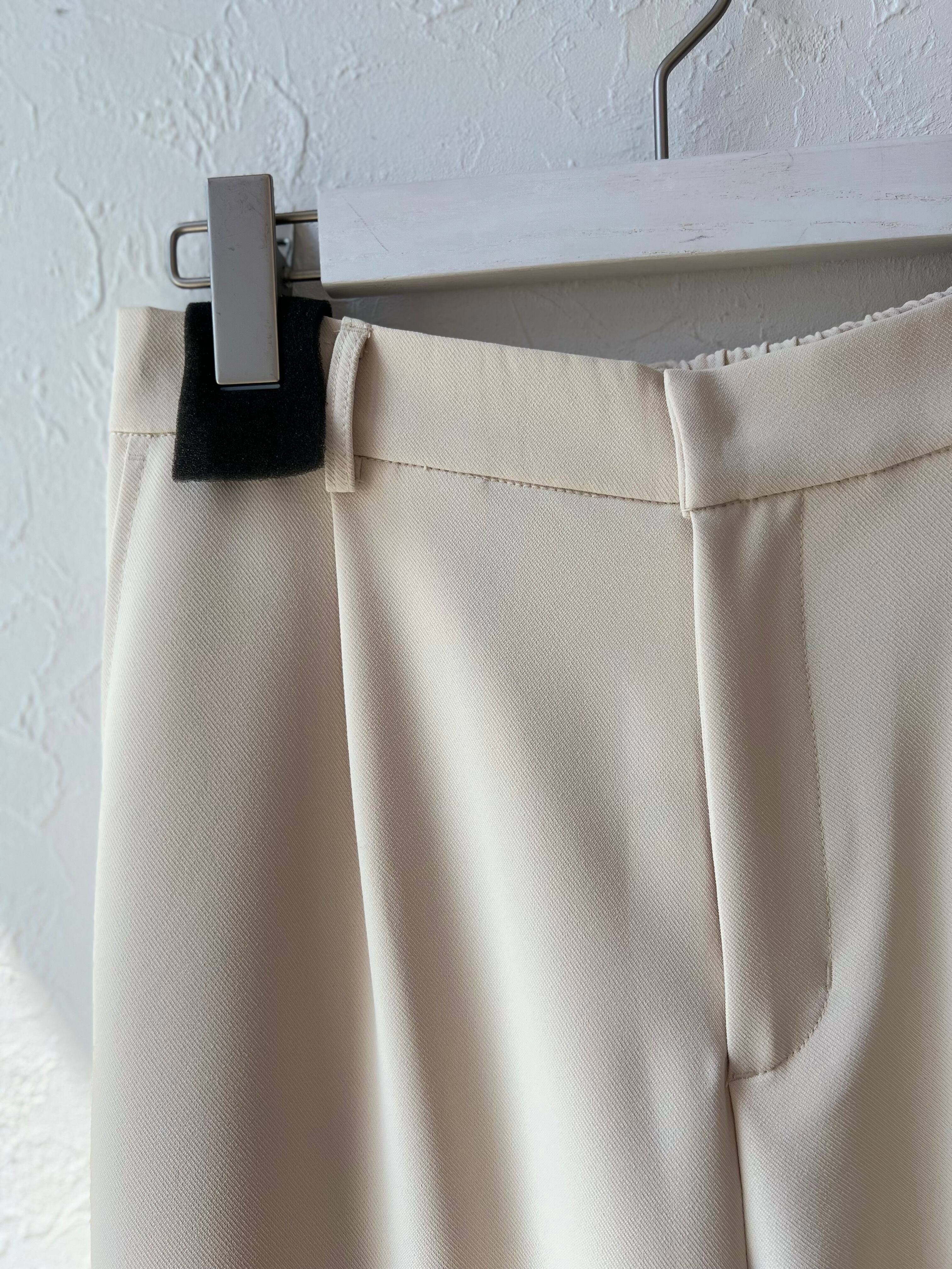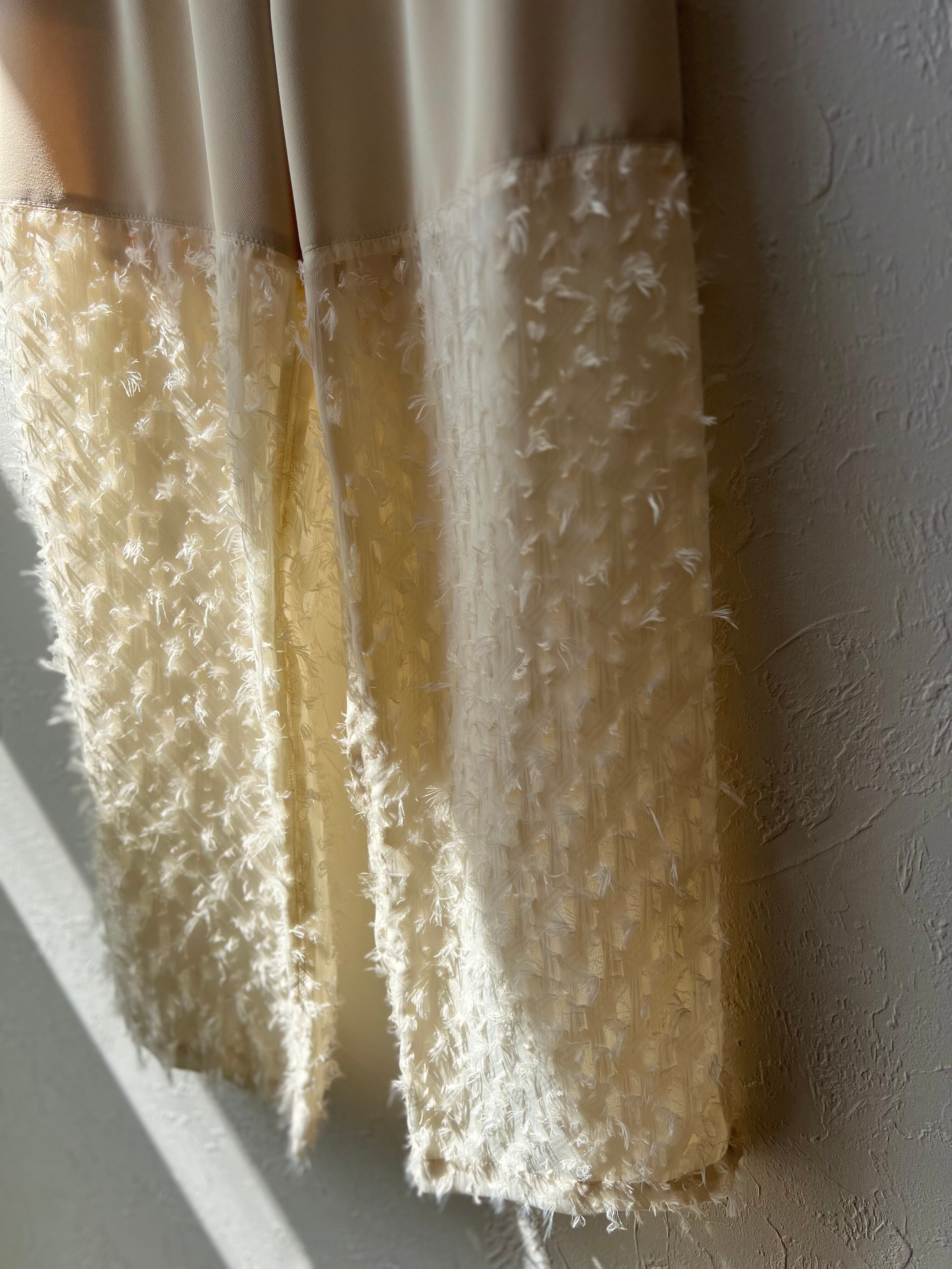 中肉の落ち感のあるツイル生地と透け感のあるフリンジカットジャガードをドッキングしたワンタックパンツです。