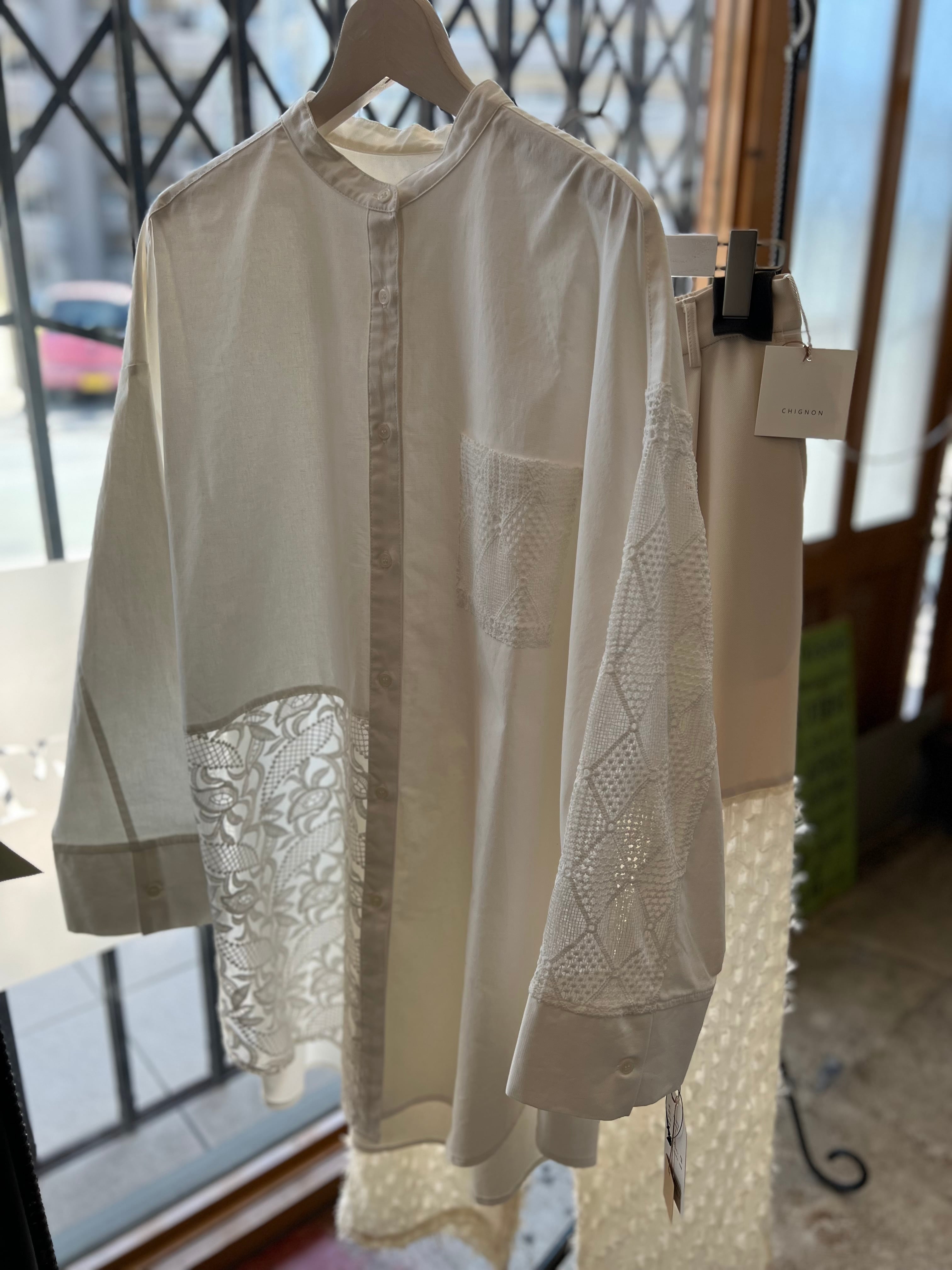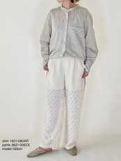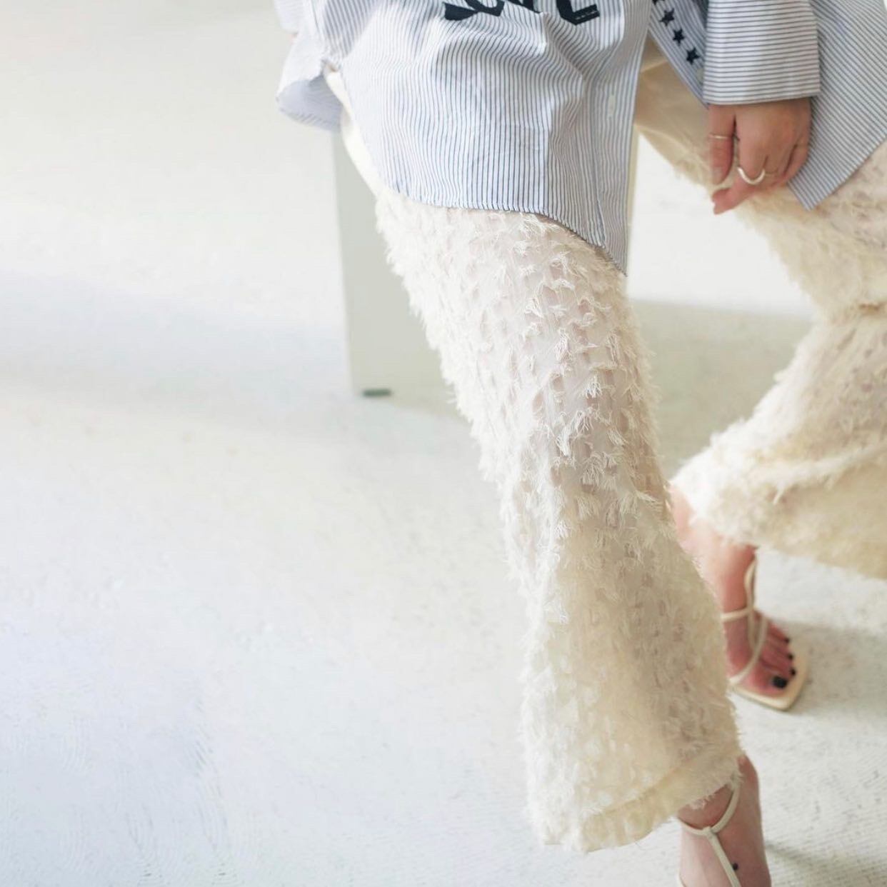 カットジャガード部分の程良い透け感とワイドストレートシルエットで、女性らしく着用していただけます。