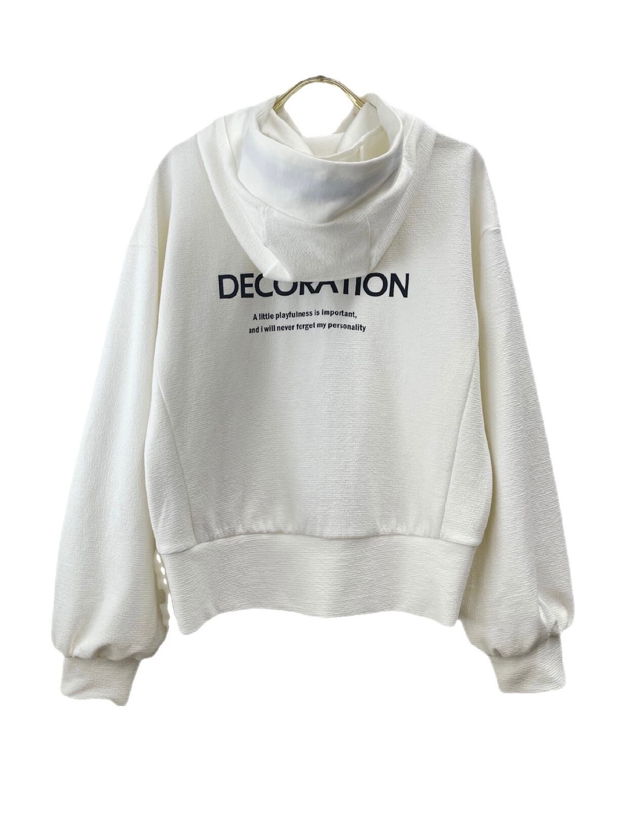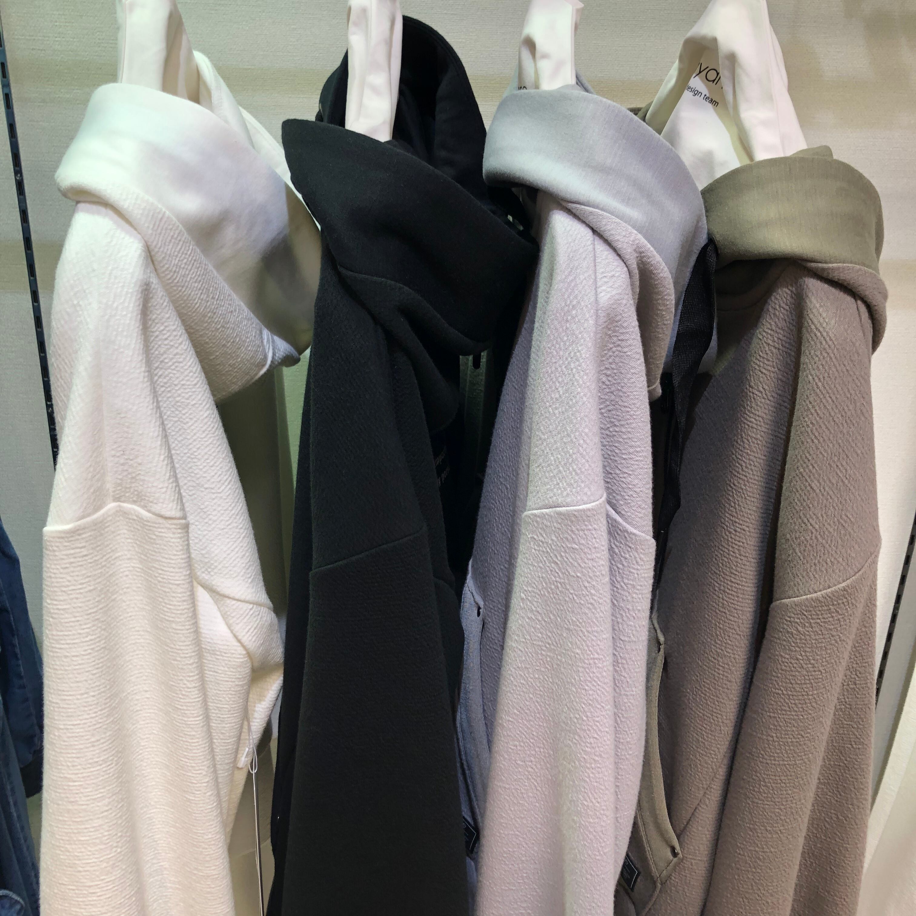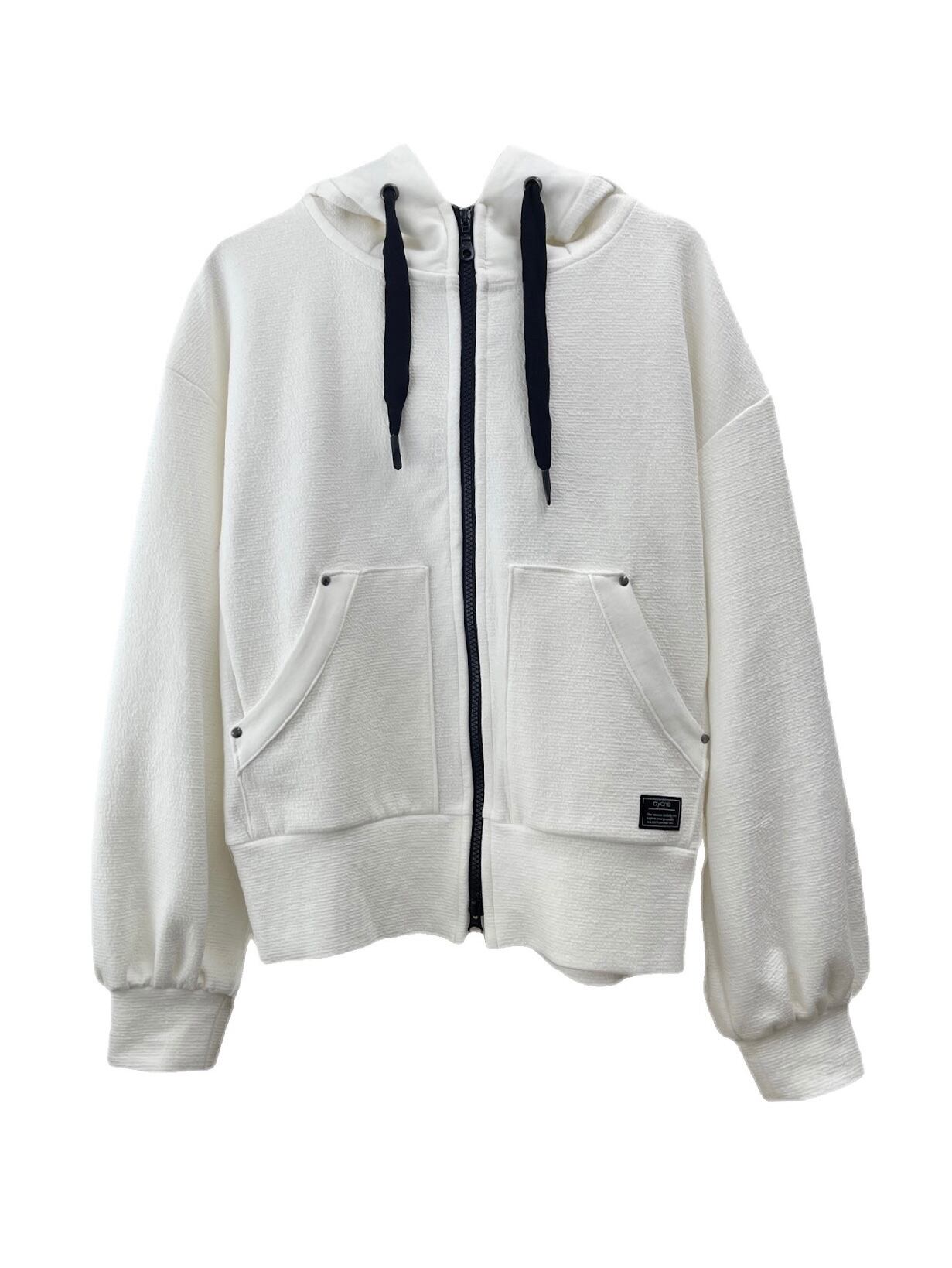 ウエスト部分を少し小さめにすることでダブルジップの効果を発揮!裾部分のジップをあげたときの開き具合を計算して小さめに作製されたジップアップパーカー。