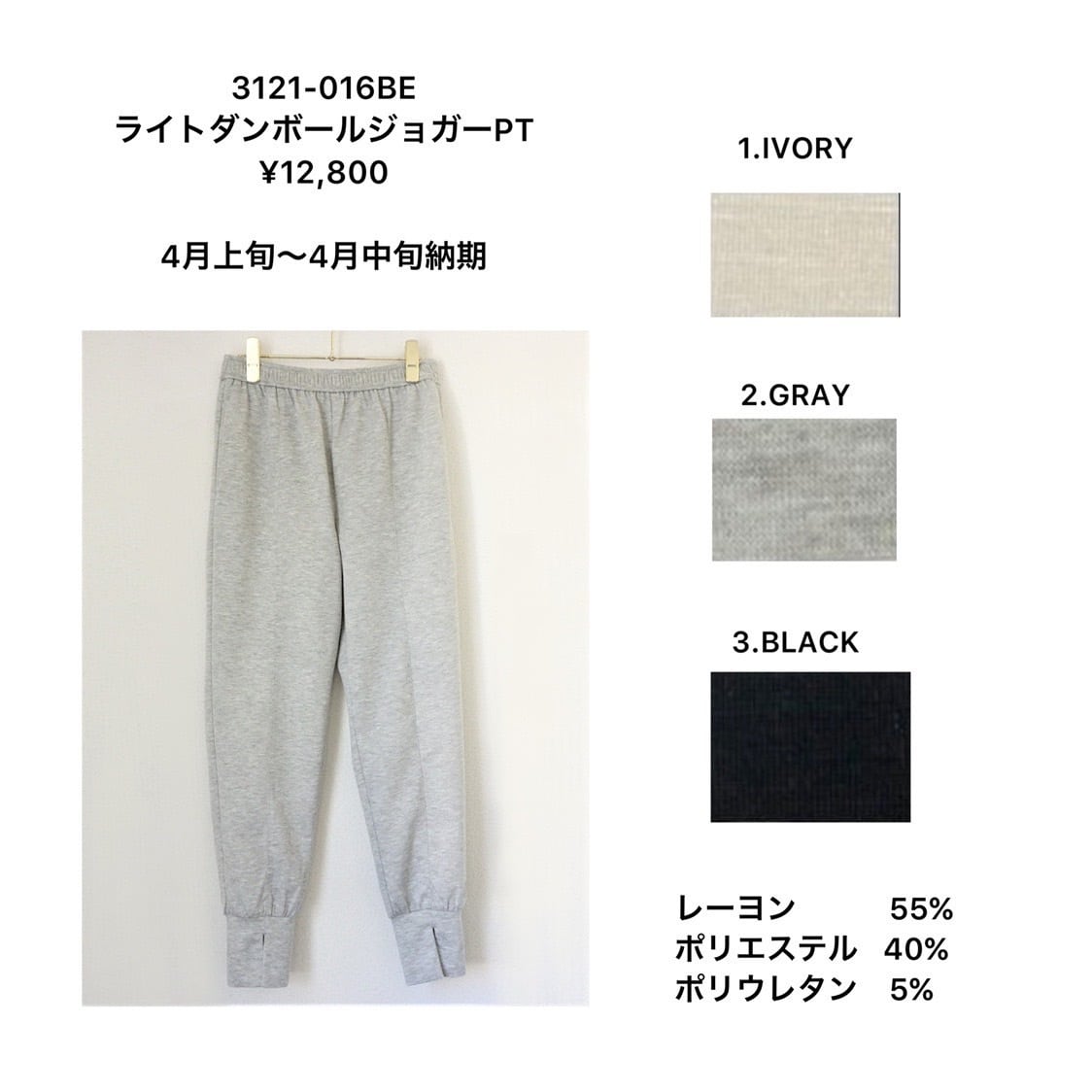 昨年好評でしたライトダンボール素材のジョガーパンツに新色を追加しました。カジュアルなアイテムですが、弾力と落ち感のあるダンボール素材を使用し、きれいな印象と着心地の良さが人気のポイントです。
