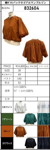予約販売【ayane】綿ボイルバックロゴドルマンブルゾン(832604)