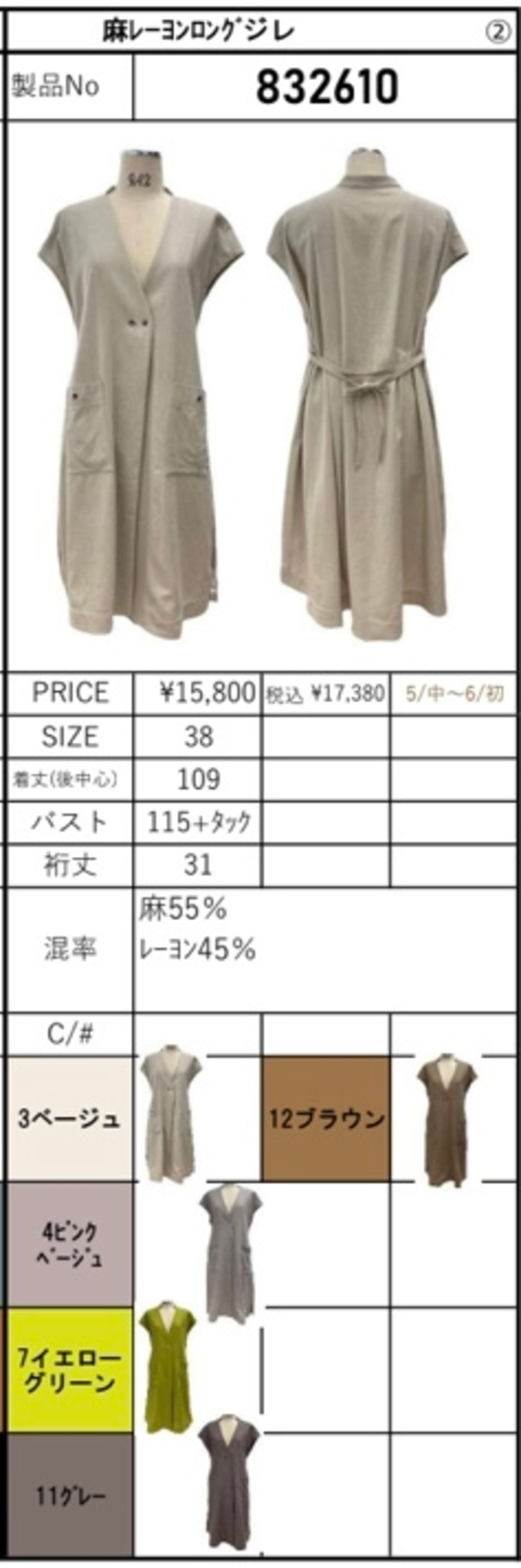 予約販売【ayane】麻レーヨンロングジレ(832610)