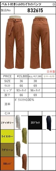 予約販売【ayane】ベルト付きシェルタリングタックパンツ(832615)