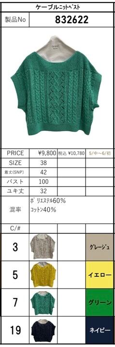 数量限定 予約販売【ayane】ケーブルニットベスト(832622)