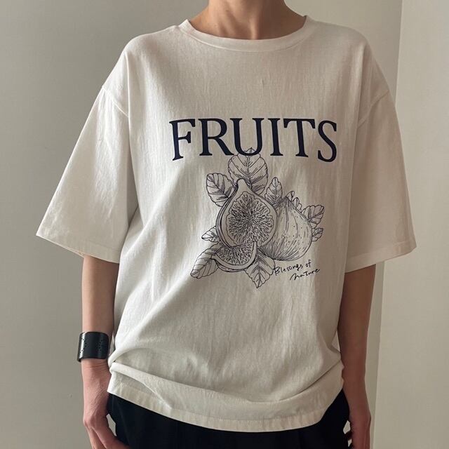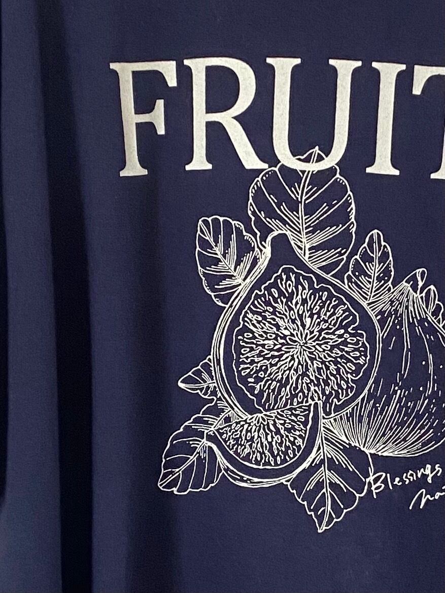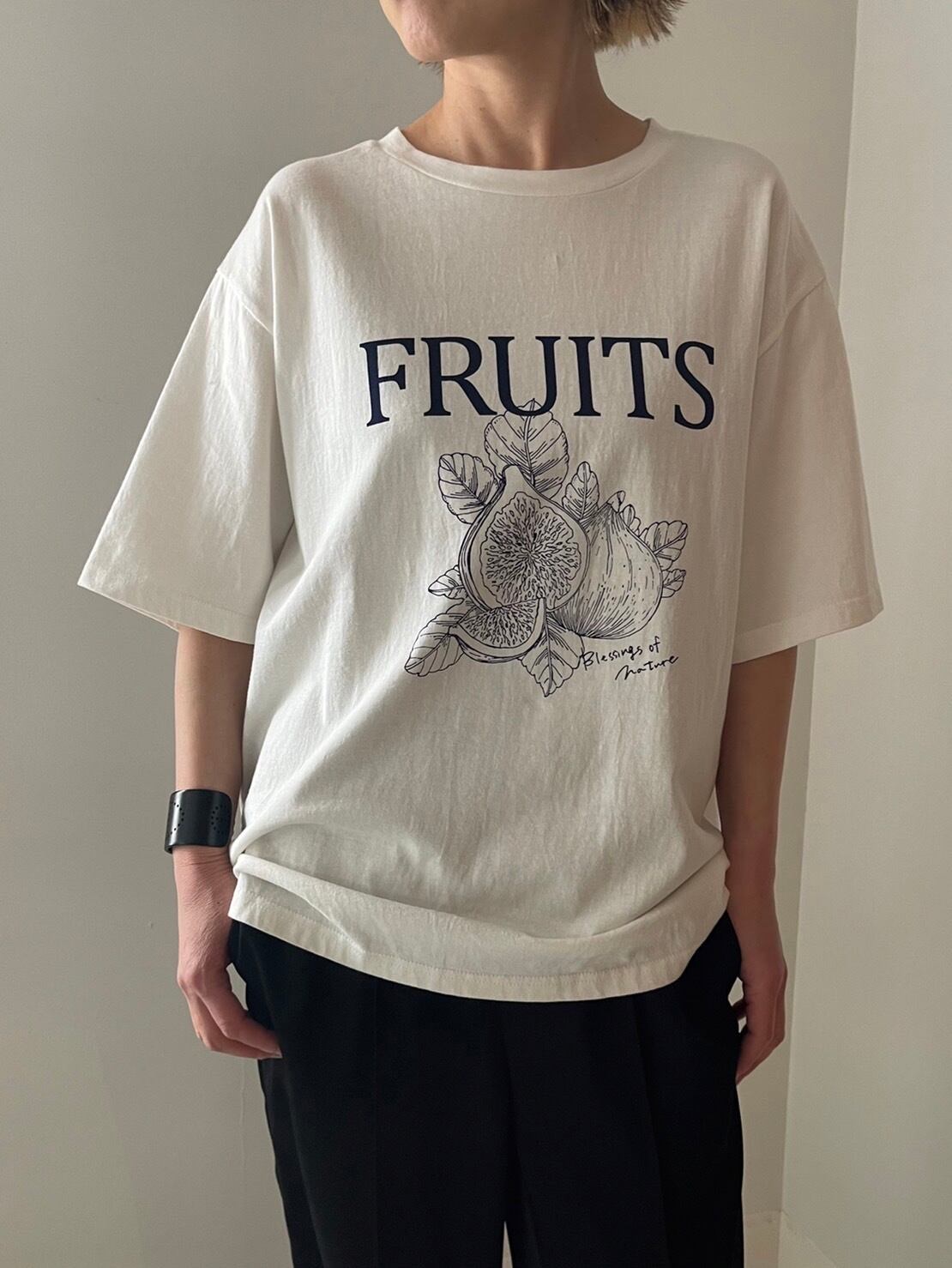 程よい厚みの綿素材を使用したフルーツプリントTシャツ。