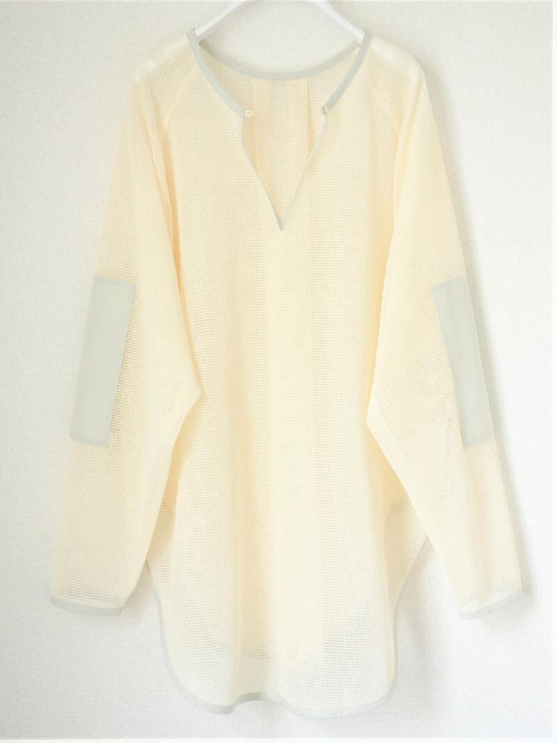 ワークテイストなディテールが新鮮なメッシュブラウスに仕上げました。