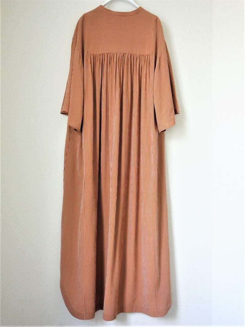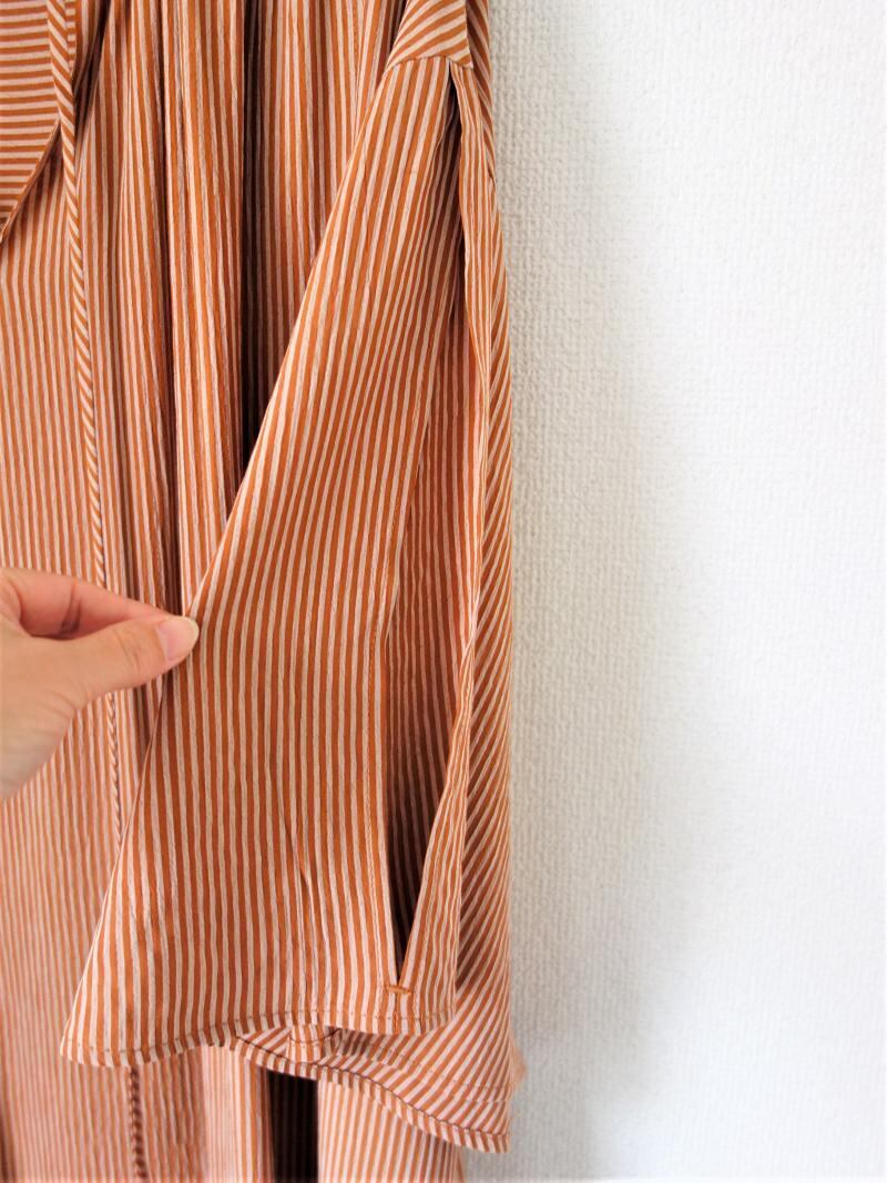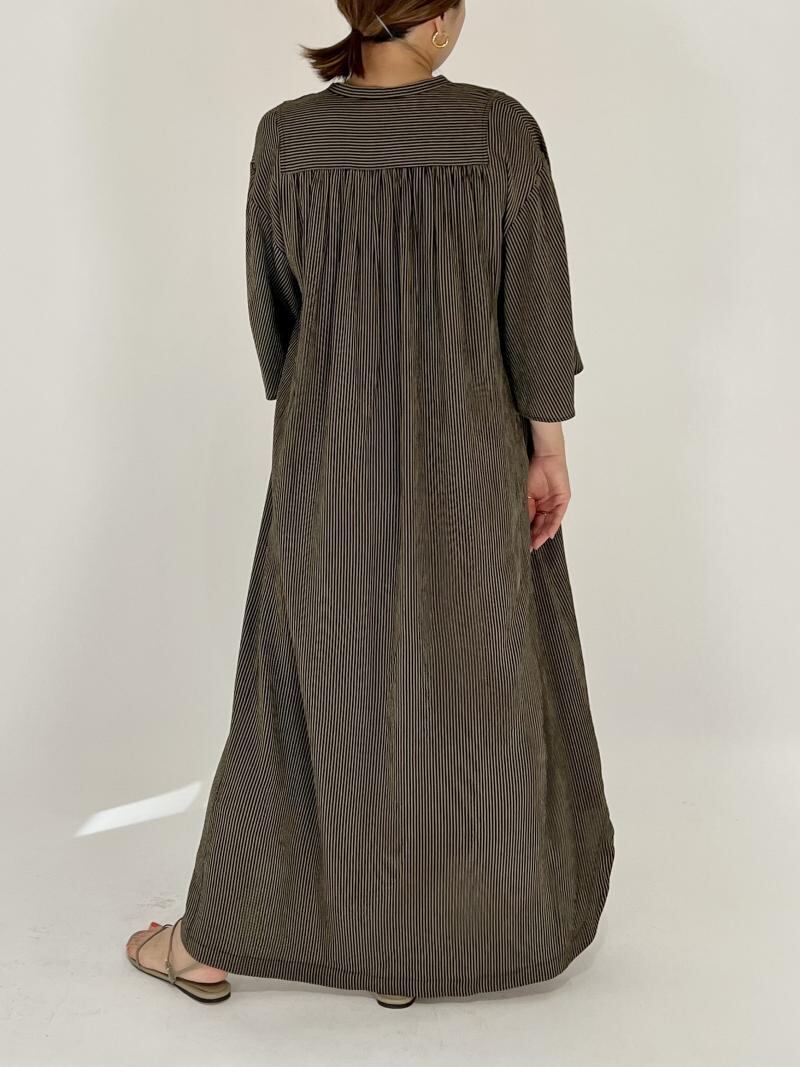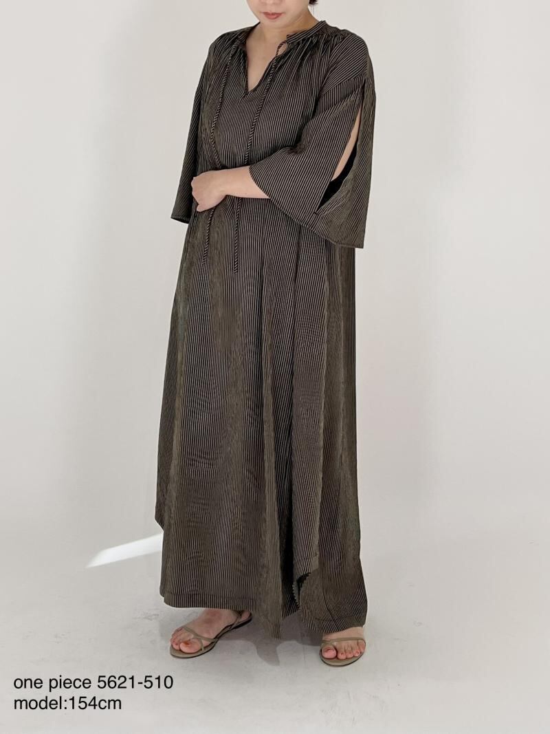 落ち感のある表面感のあるストライプ生地を使用したカフタンOPです。