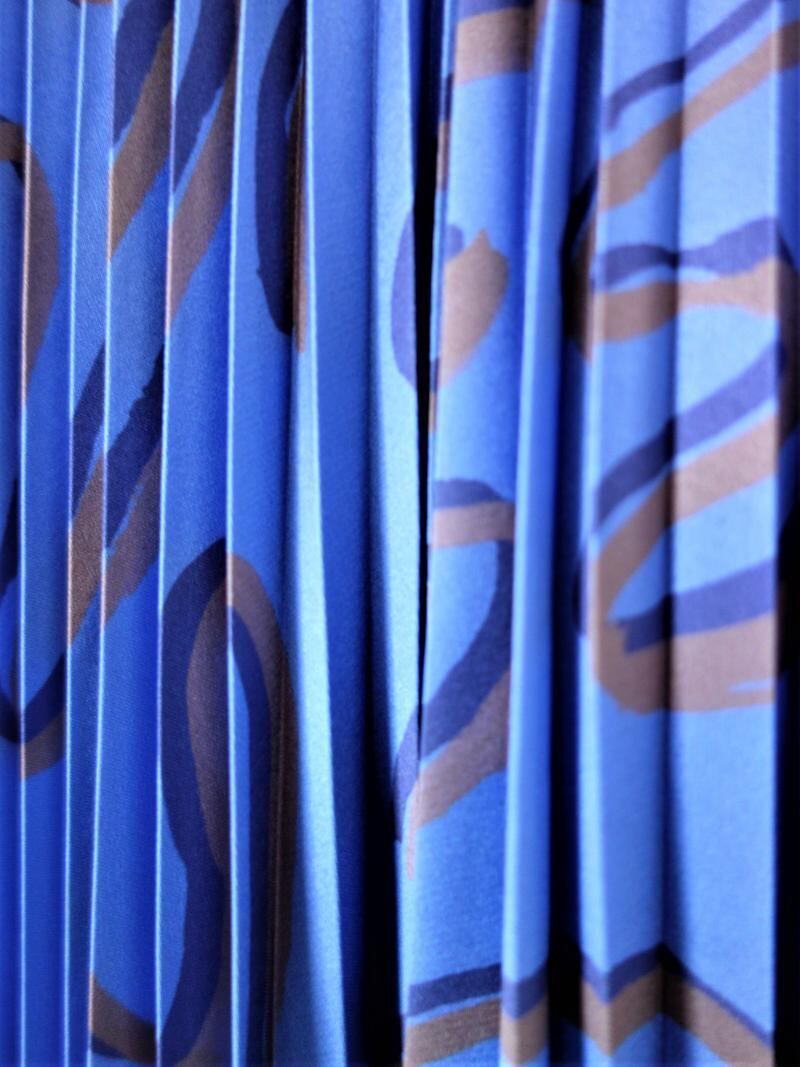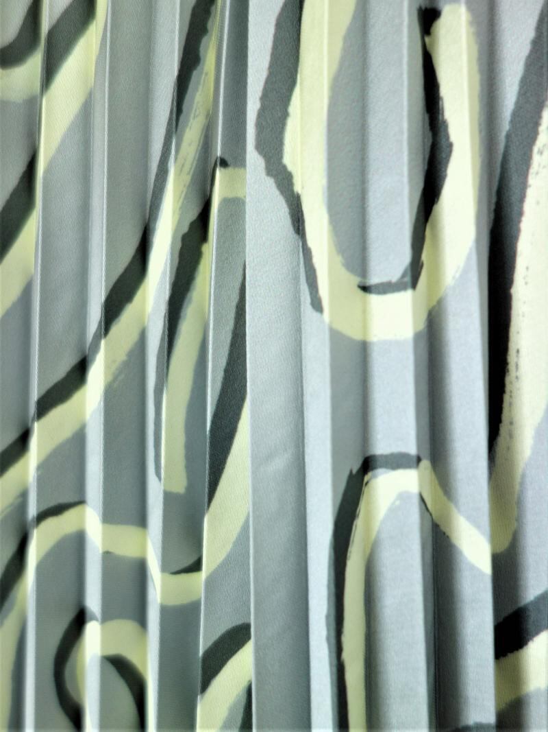 オリジナルの柄をプリントした生地にプリーツを施したランダムプリーツSKです。