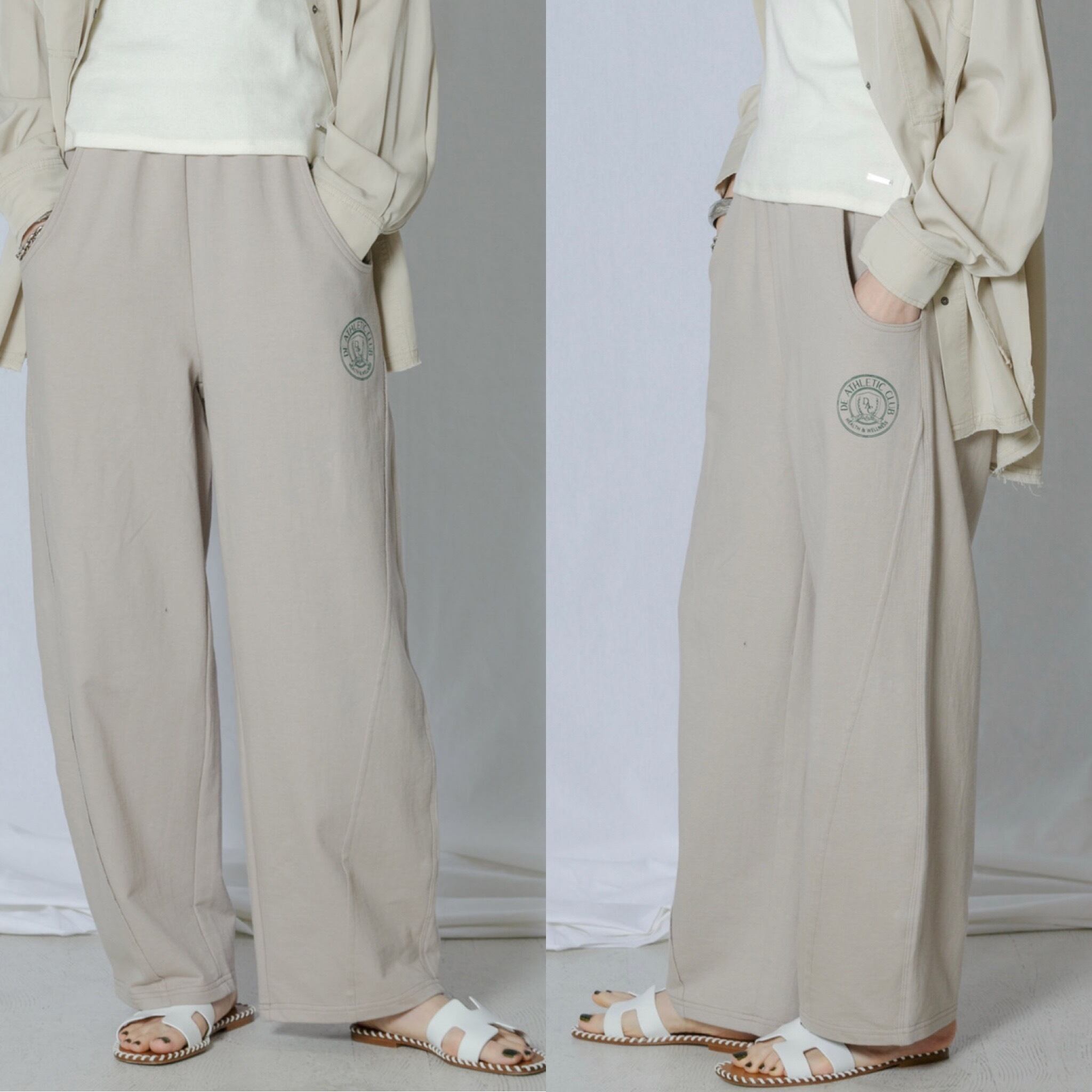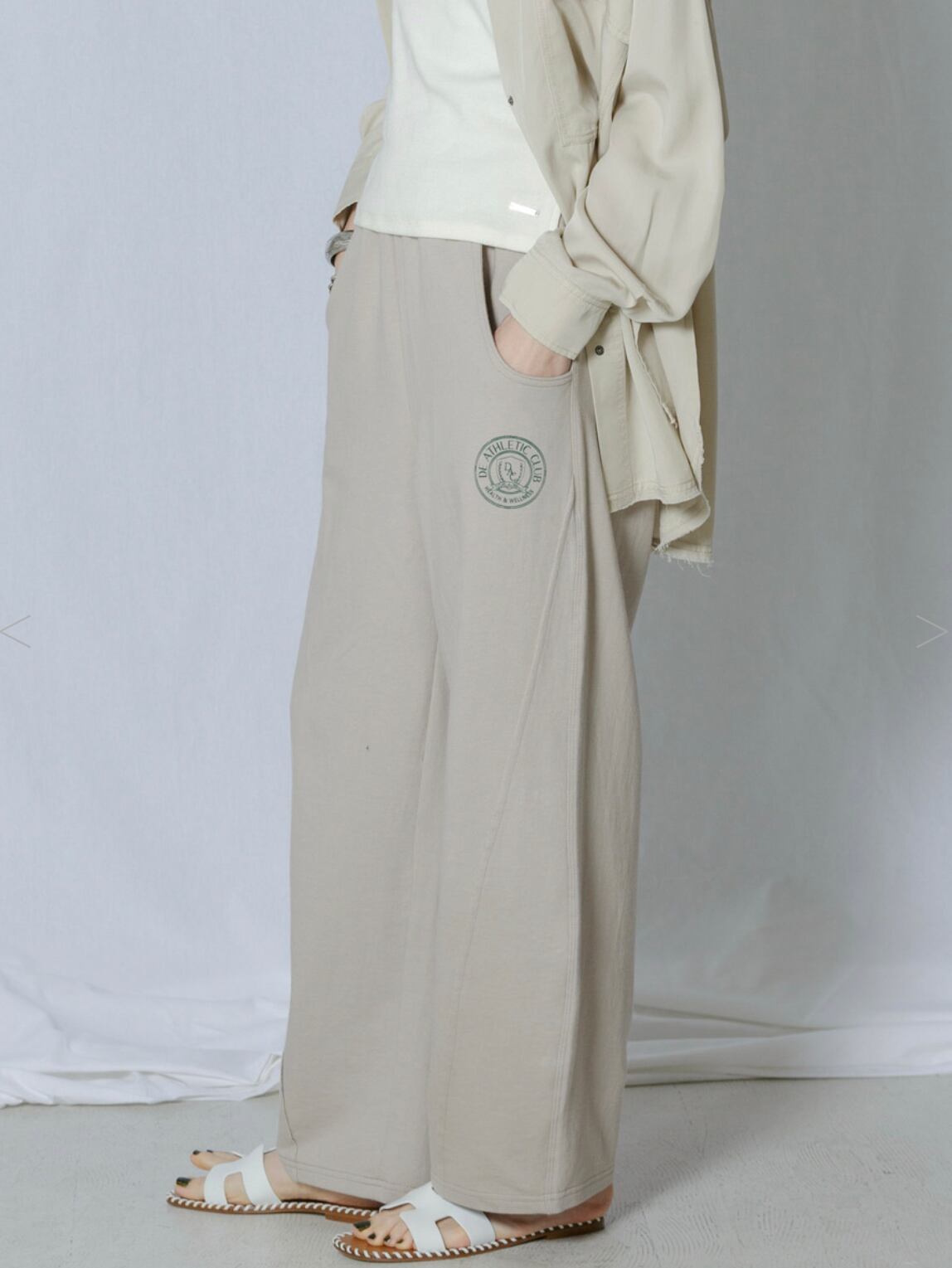 トレンドのスウェットパンツですが、深めのポケット口や少し裾に向けて入った丸みのあるシルエットが新鮮でおすすめです。