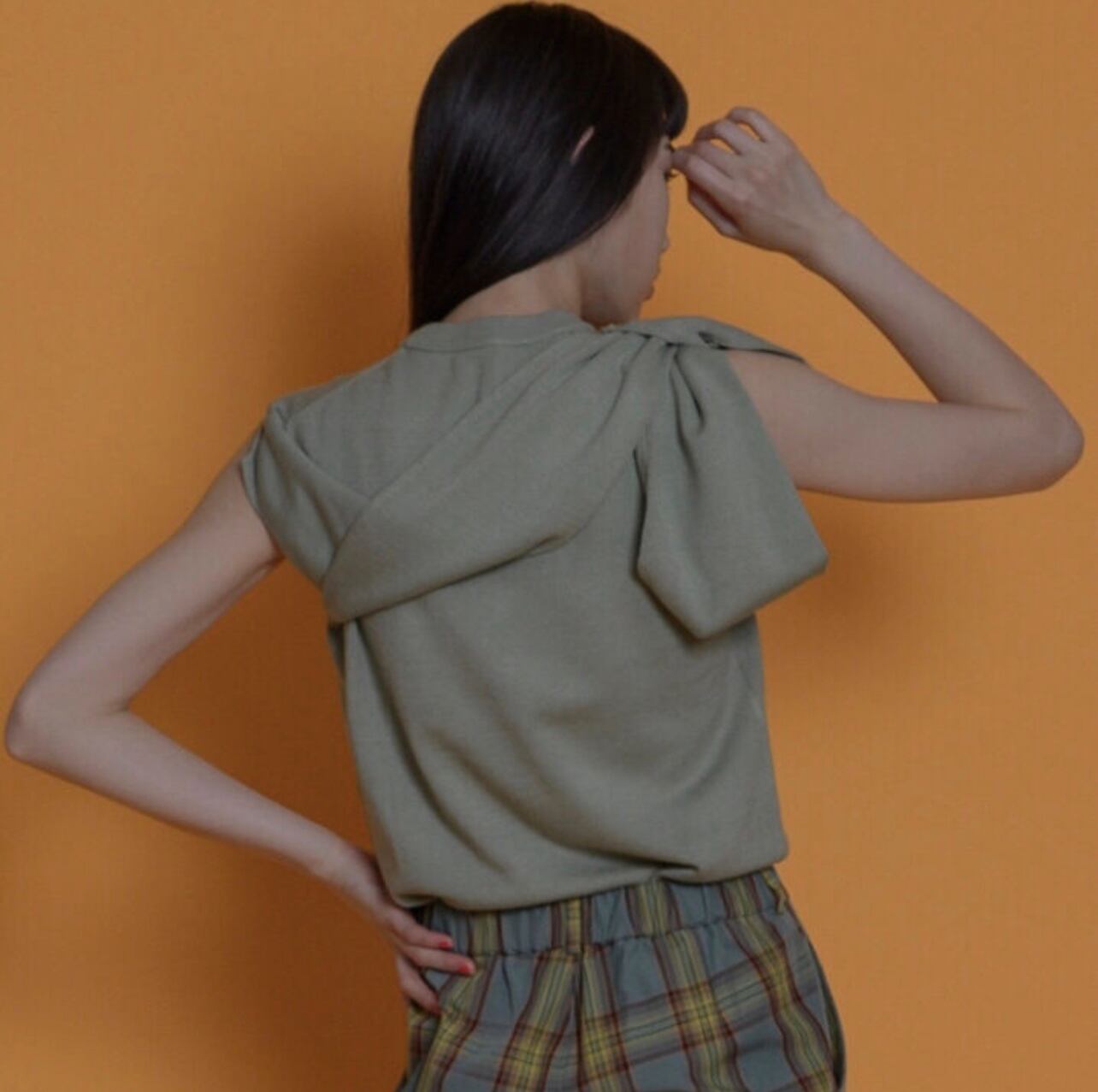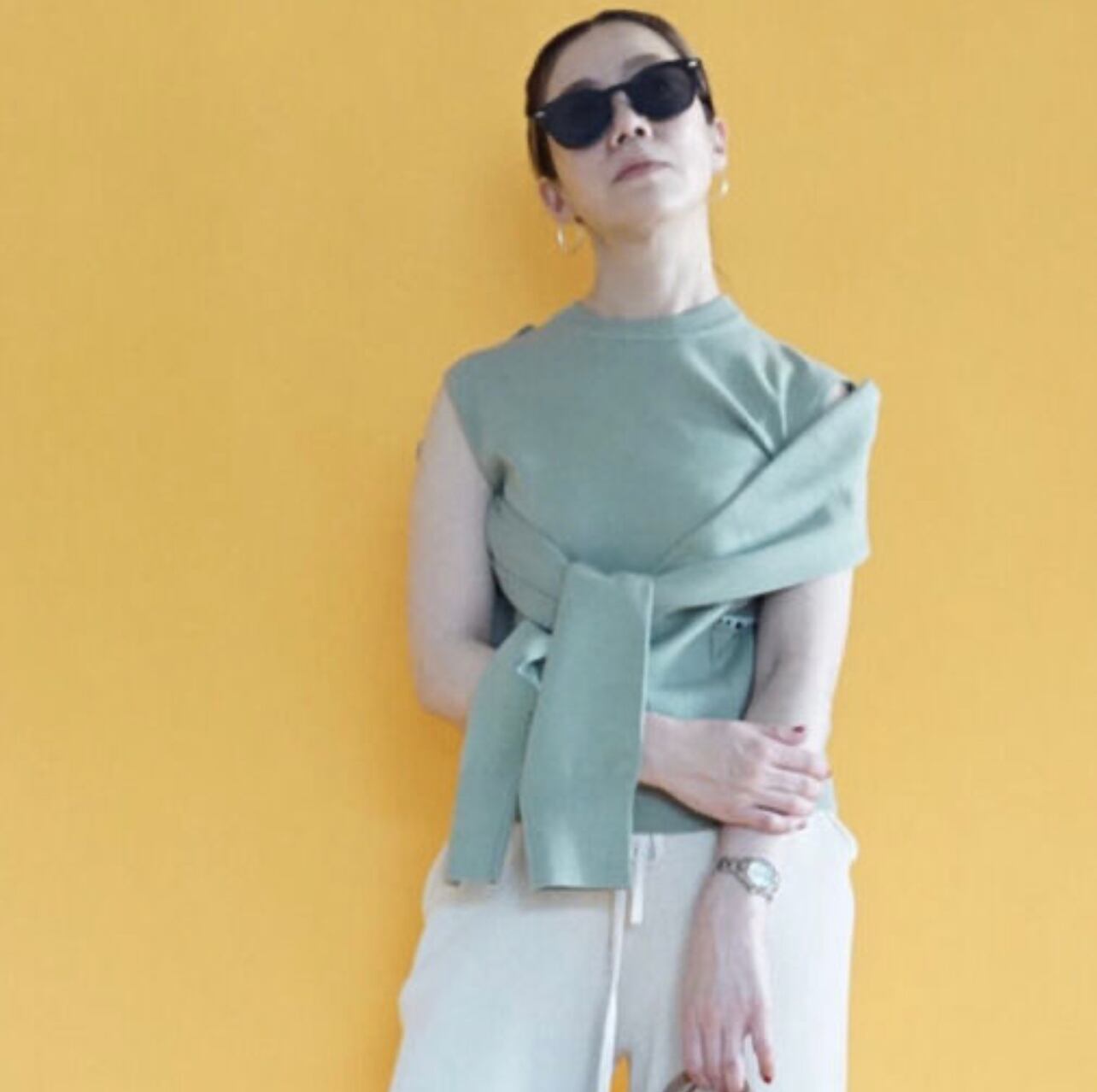 セージグリーンは今流行中の濃いグリーンに飽きた方におすすめです。大人の落ち着いた雰囲気で上にジャケットをオンすることでオフィスカジュアルでも着用が可能だと思います。