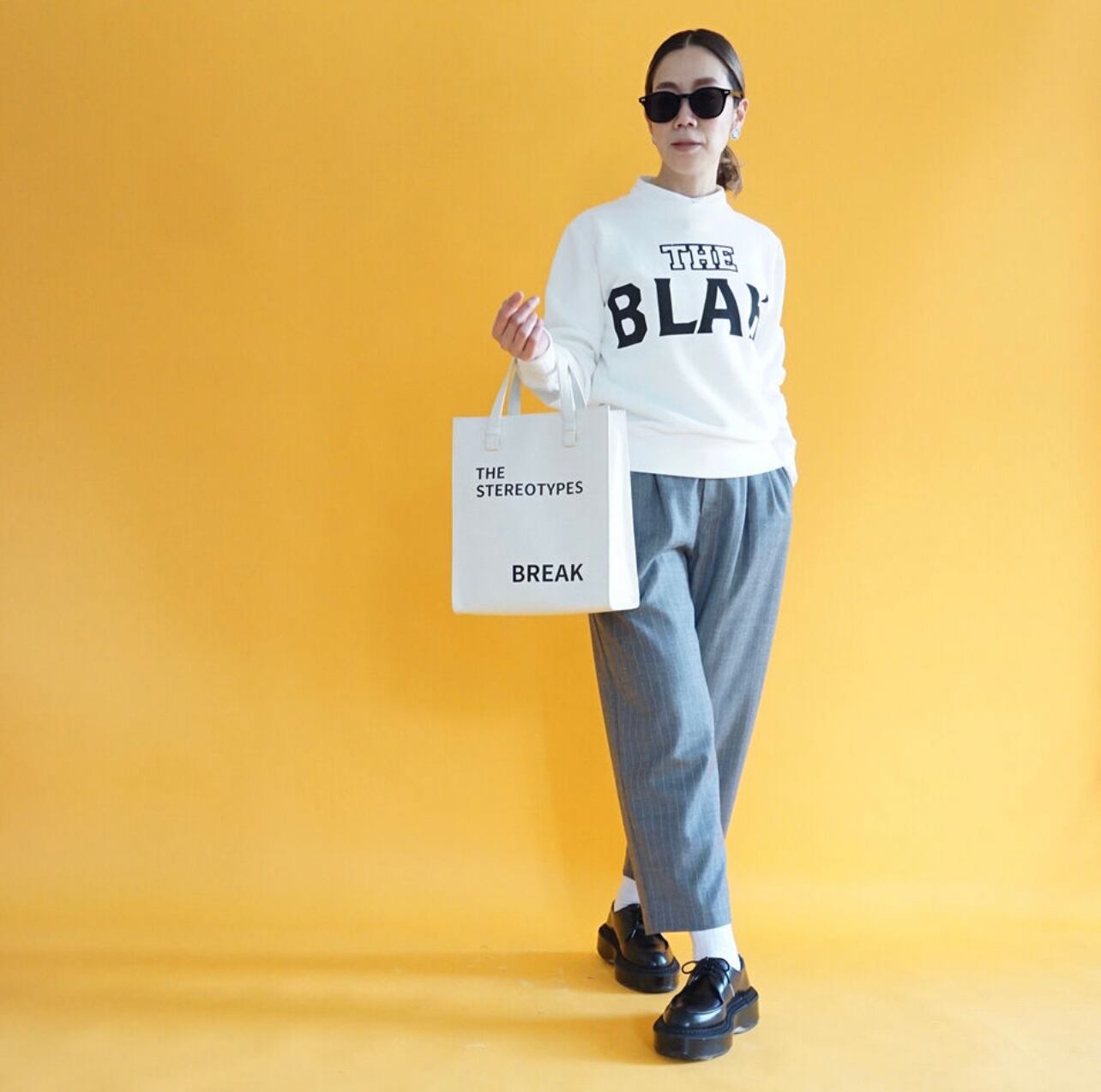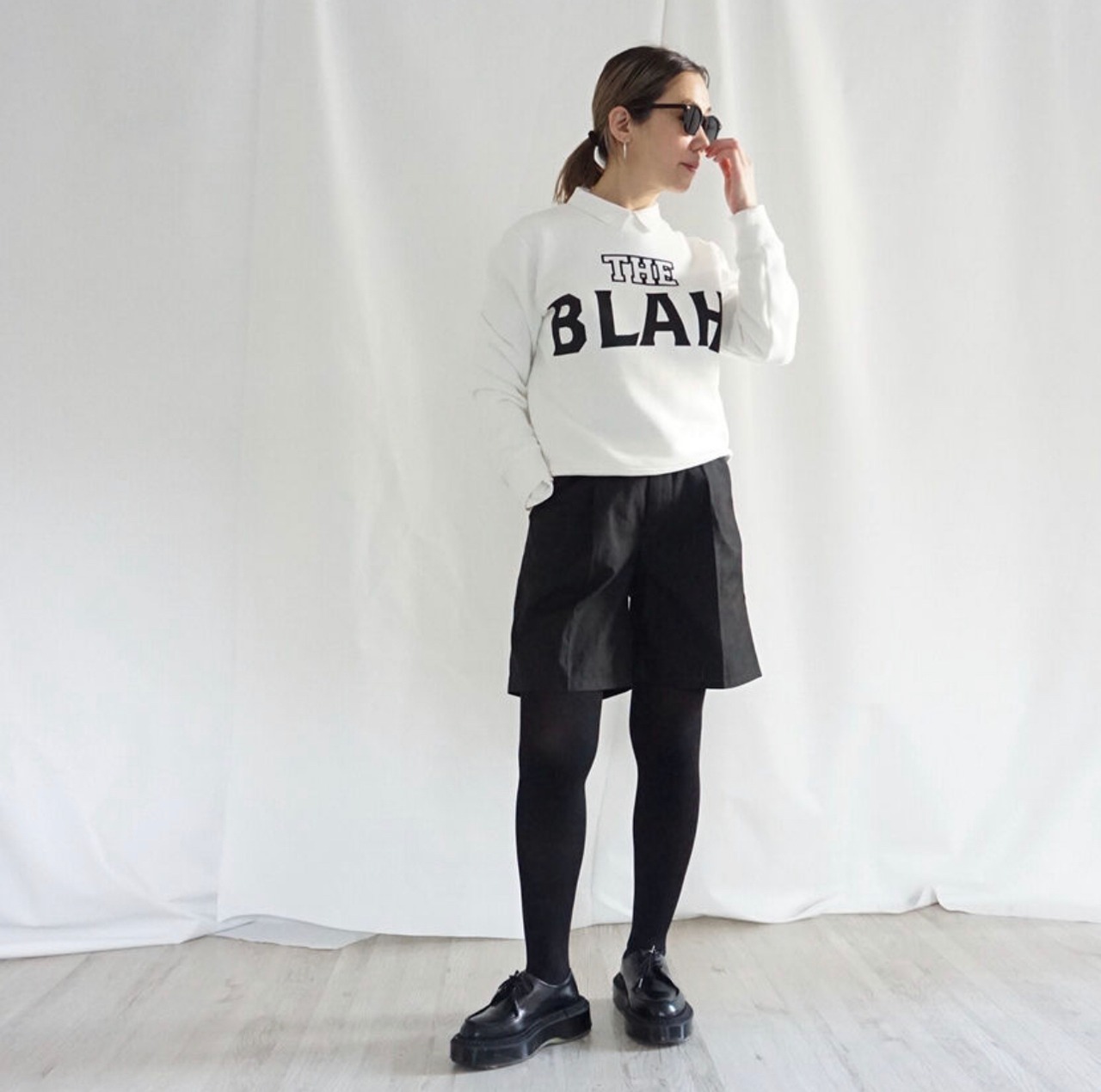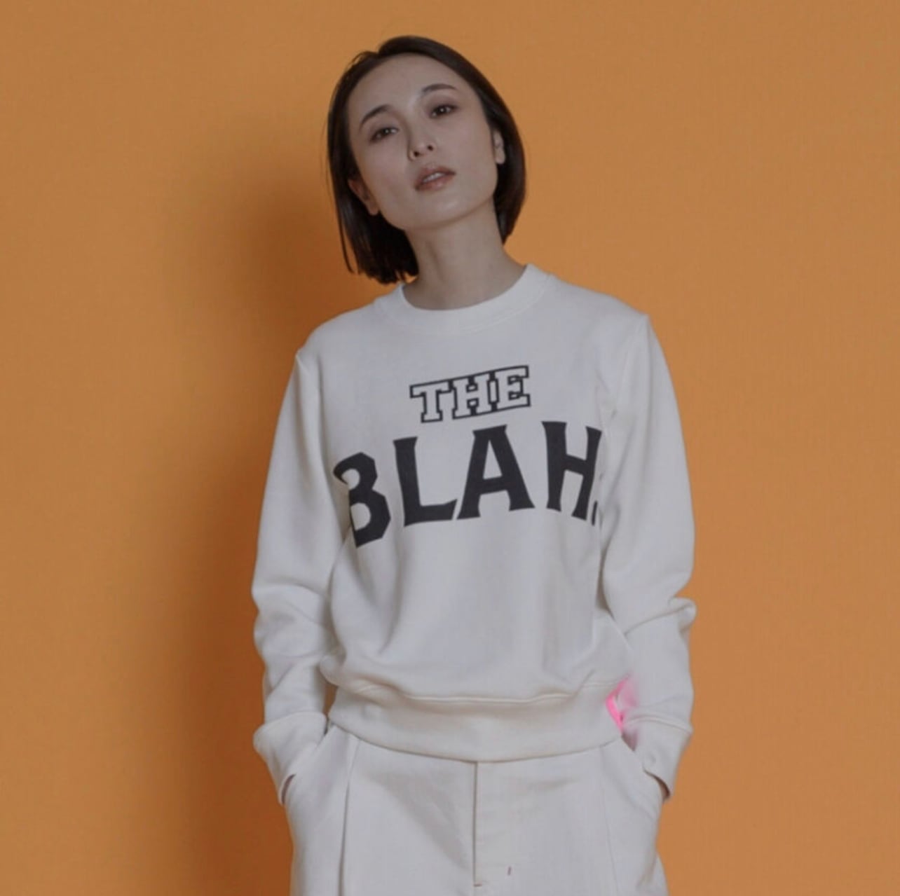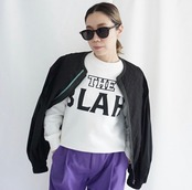 かくいう私もおしゃべりが止まらぬタイプで、真のおしゃべり女です。話をする事でストレスの発散になったり、話を聞いてもらう事で頭の中の整理が出来て、言葉にする事で次にどう行動するかを’’言葉’’で考えていく事ができる。でもそのお喋りも長いと人の迷惑に、、、という自分やおしゃべりな人に対するアイロニーをロゴにしてみました。今回のコレクションもBLAH BLAHのロゴ、SHUT THE HELL UP 色々喋る、、もううるさい、だまれ!などを多用しています。コレクション自体が’’おしゃべり女’’に対して向けられるロゴになっています。ロゴを作る事にただ字面を整えるような作り方より、意味があったほうが楽しいと考え、私は一緒にデザインをしているグラフィックデザイナーのスタッフといつも私自身の興味がある事や、何かのテーマにくくり、思いをロゴにしています。今回はメッセージなどはなく、ちょっとふざけたテーマにしてしまいましたが、少しでも楽しんでもらえたら嬉しいです。なので、気立ての良い寡黙な方よりも、とてもおしゃべりな方がこれを着てくださったら嬉しく思います。