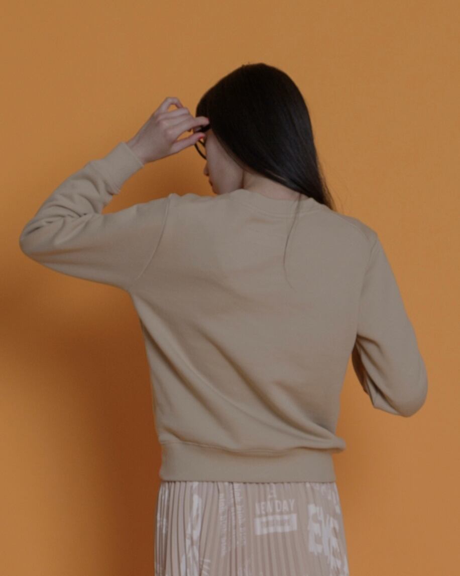 今回のスウェットは2つのタイプを作ってみました。いつも定番で毎回大人気のビッグスウェット。これは前回と同様、身頃が大きめでヒップ周りにフィットしないよう裾にかけて身頃をかなり大きくしているオーバーサイズ。スウェットはとても好きで定番的に出していますが、肉厚でしっかりとしていて、気持ちの良い肌触りの素材を選んでいます。また全く同じ素材で今回はミニサイズを作りました。身頃はそんなに細くはなく、ショート丈。ビッグスウェットと比べるとかなりジャストサイズでの提案です。オーバーサイズも可愛いですが、飽きてきてしまった方にお勧めします。最近はオーバーサイズにも私自身も少し飽きてきました。
