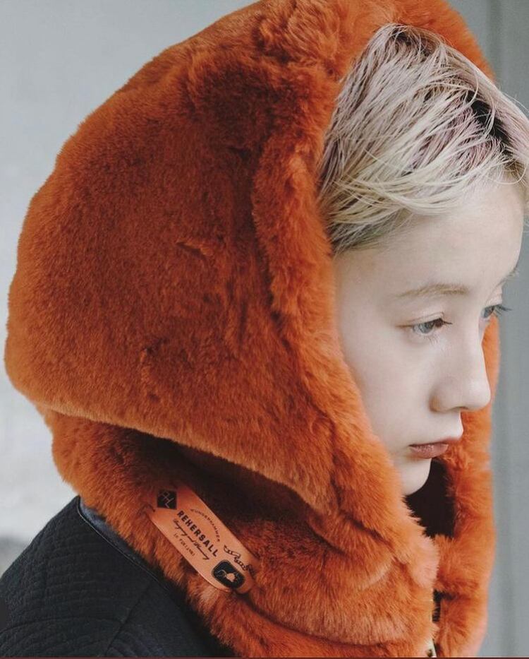 予約販売【RehersalL】eco fur フードネックウォーマー(WG957)
