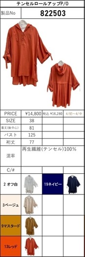 【ayane】テンセルロールアッププルオーバー(822503)