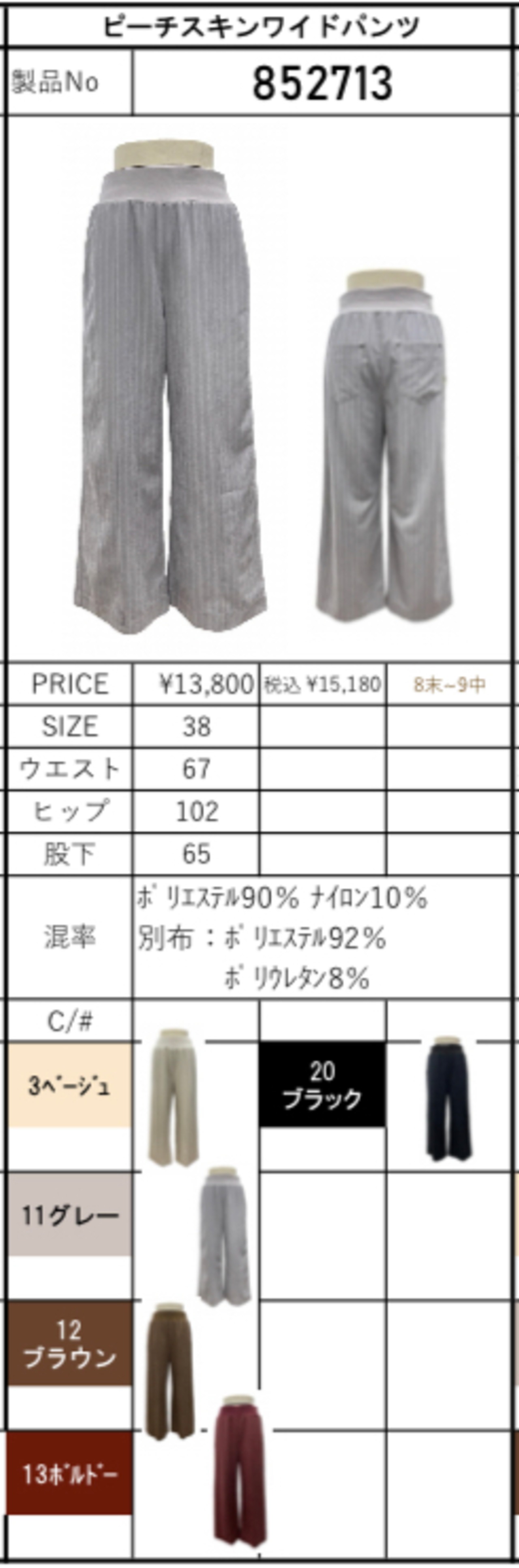 color No.3ベージュ/No.11グレー/No.12ブラウン/No.13ボルドー/No.20ブラック
