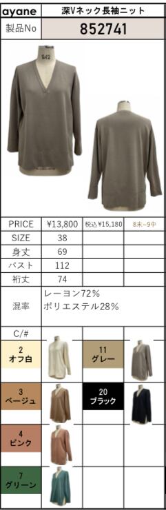 予約販売【ayane】深Vネック長袖ニット(825741)