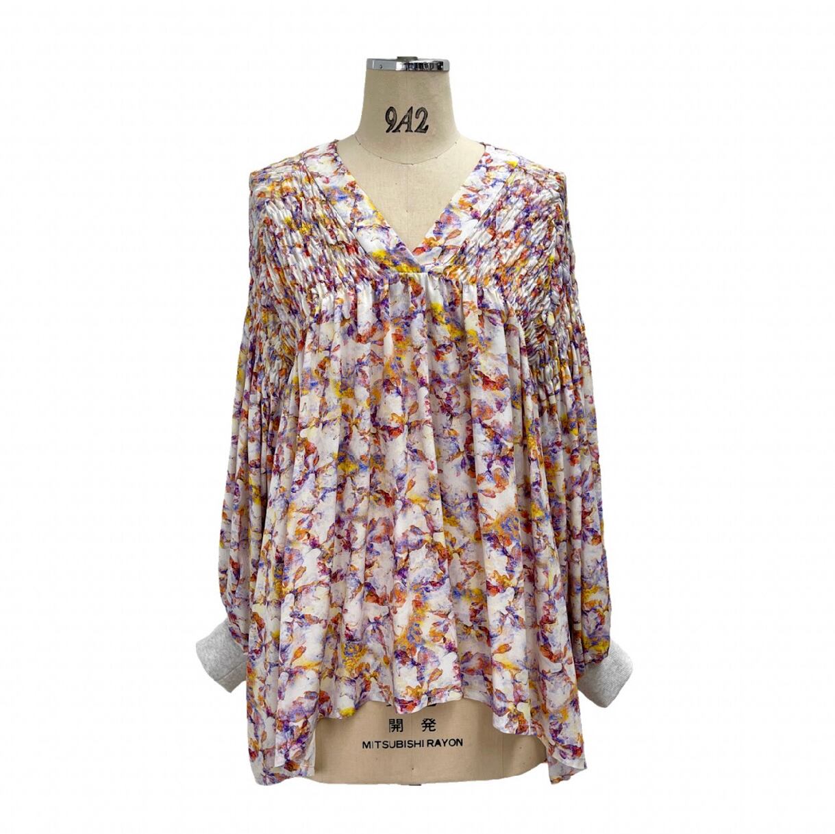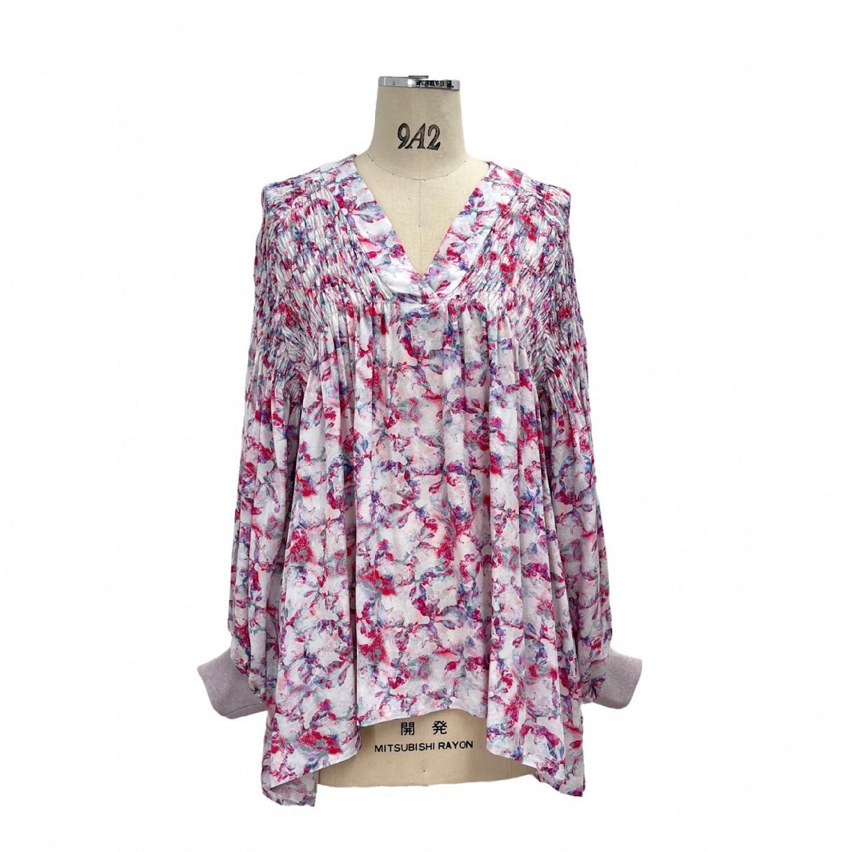 花柄シャーリングブラウス