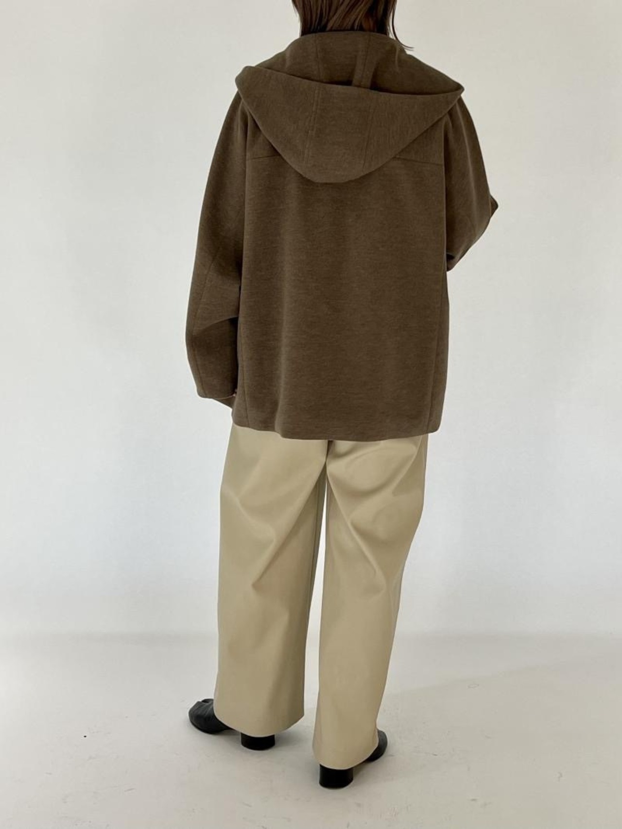 ウールライクな温かみのある素材を使用したフード付きZIPコートです。