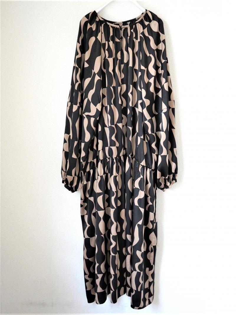 全体的にギャザーをふんだんに使ったボリュームのあるシルエットのワンピースでモードな印象の1枚です。