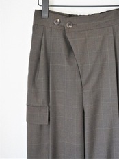 チェックのTR素材を使用した、ラップベルトタイプのパンツです。