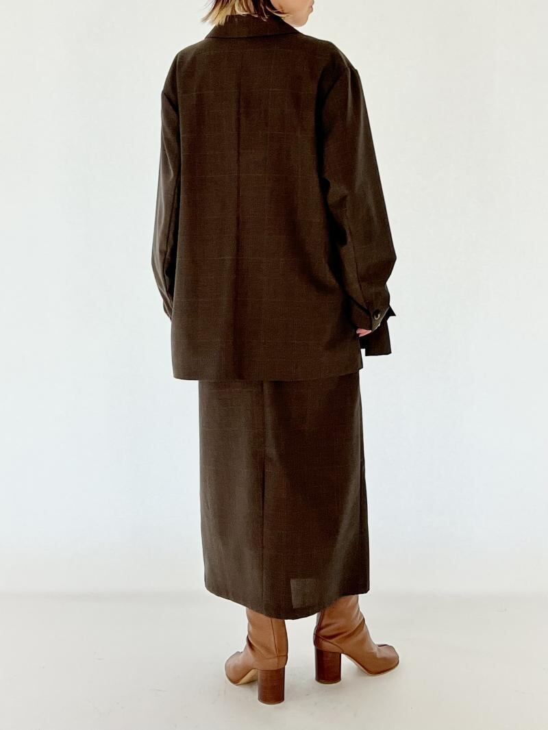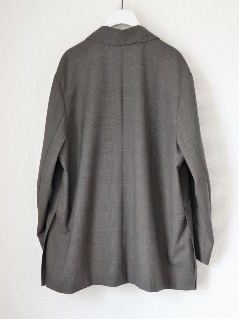 同型の無地素材よりも少し薄手の素材感で、落ち着いた配色感のチェック柄がよりマニッシュな印象に仕上がっています。