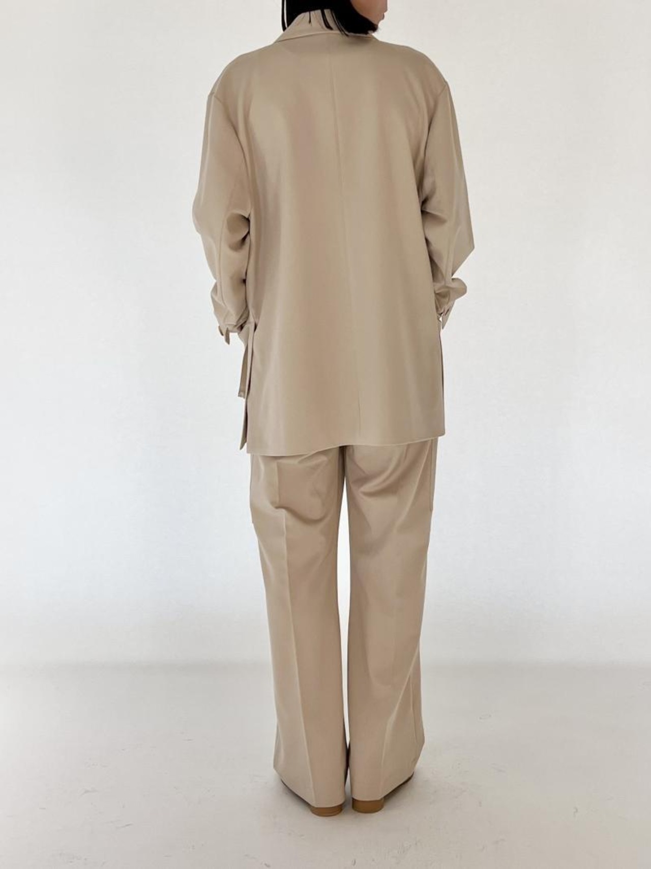 少し肩から落ちたドロップショルダー、オーバー過ぎないサイズ感にこだわった、低身長の方から高身長の方までバランスよく着用して頂けるアイテムに仕上がりました。