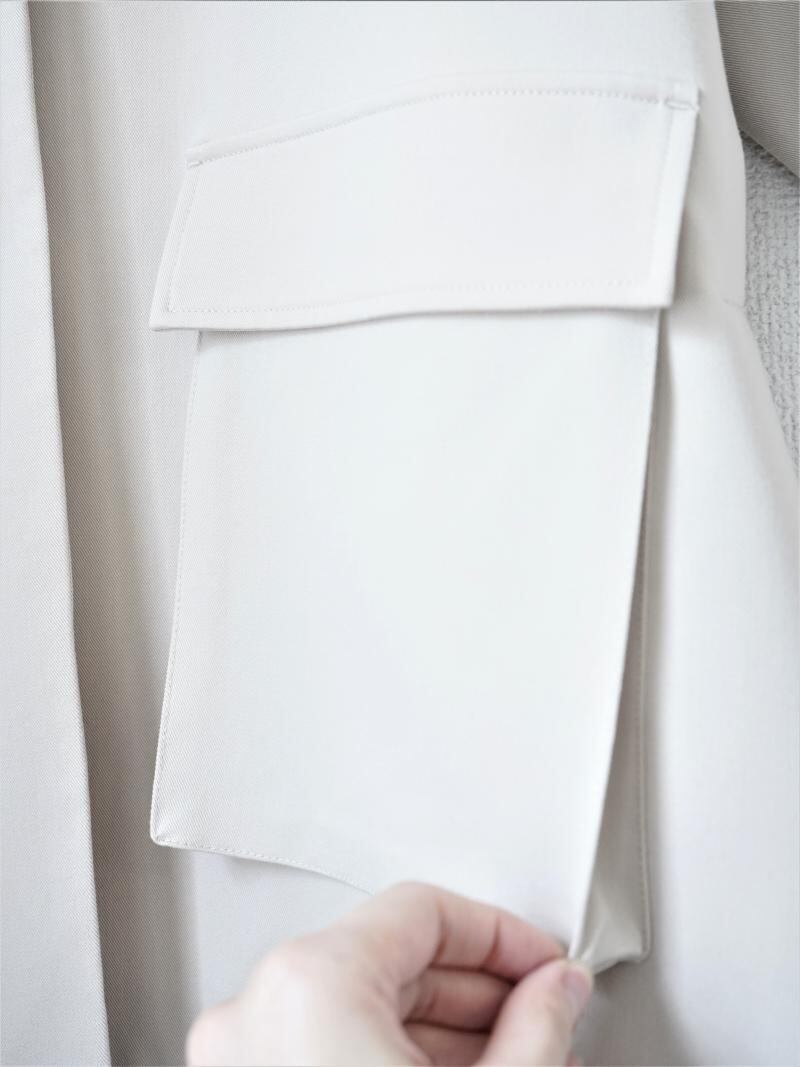 テーラードジャケットには新鮮な、マチ付きのポケットでワークテイストを取り入れ、適度なカジュアル感をプラスしています。
