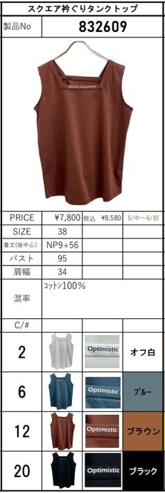 【ayane】スクエア襟ぐりタンクトップ(832609)