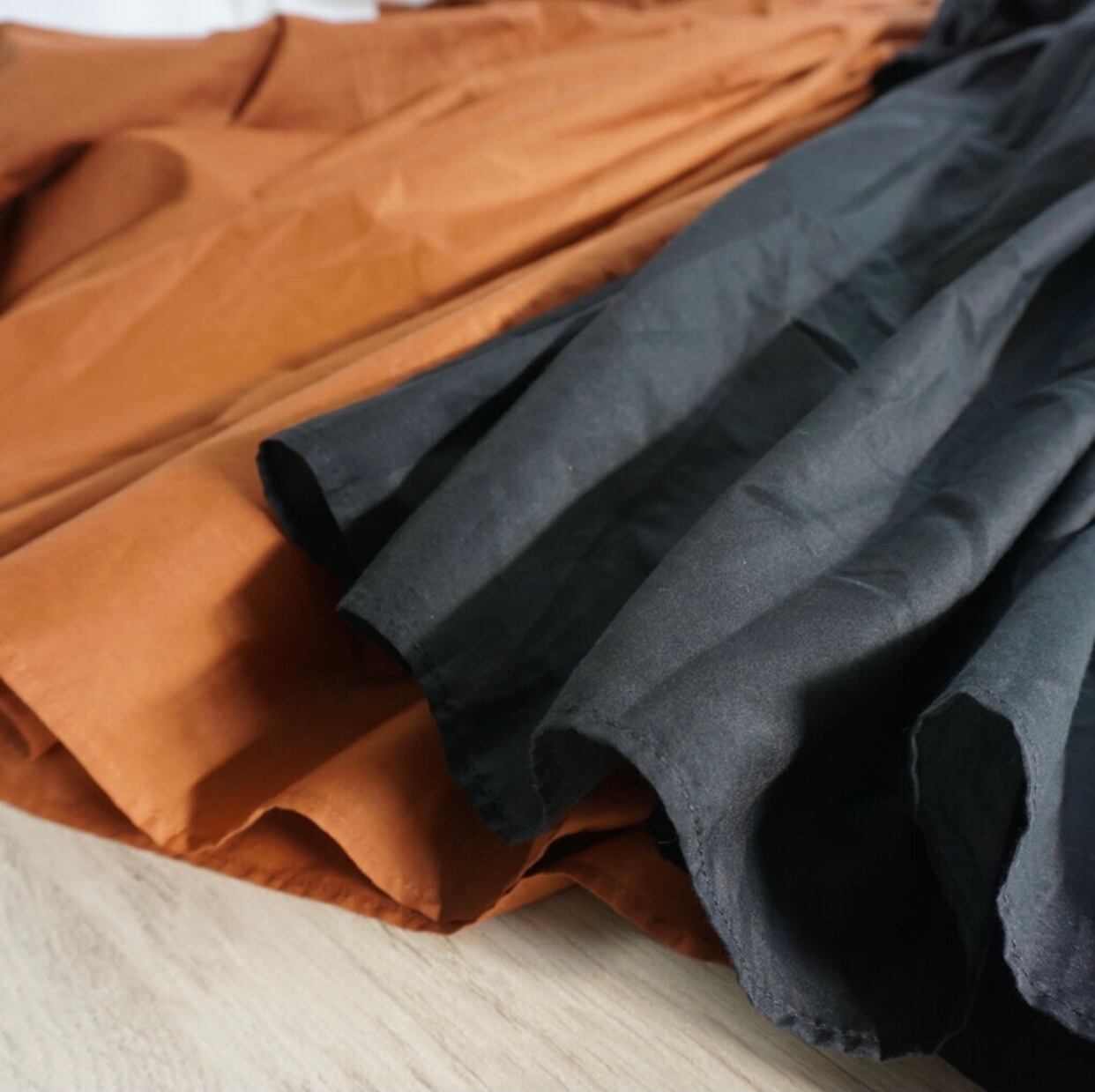 袖の部分はたっぷりとしたロングのパフスリーブにしました。これも半袖ではなく真夏の暑い日にも着ることができる薄い素材で袖がついているのがポイントです。日焼け防止にもなり、風通しが良い素材なので見た目以上に涼しく過ごす事ができます。