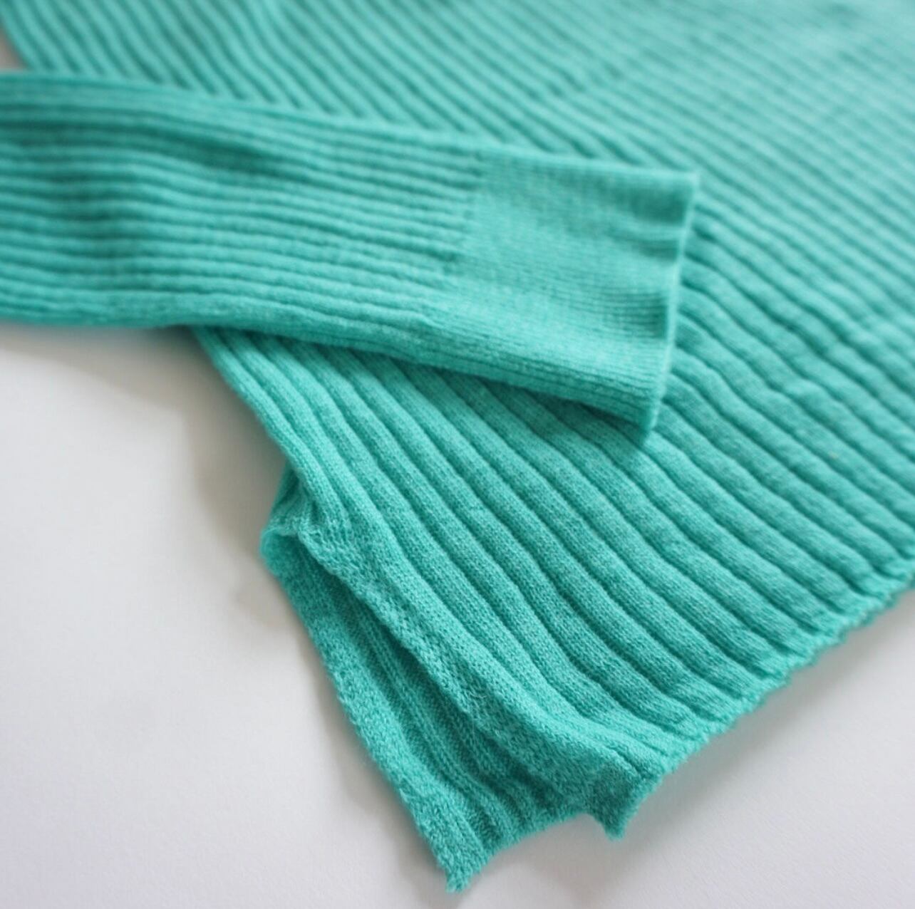 カラーはホワイト、ブラック、オリジナルカラーの染色をしてエメラルドグリーンを作っています。このエメラルドはスタッフに大変人気です。寒い冬に重ね着をして使うのに本当に便利です。かなり薄手で透け感があります。一枚で着用の場合はインナーはタンクトップやキャミソールなどを重ねてください。何にでもインナーとして着用ができるので冬にとても便利です。暖かく肌触りが良いのでついつい着てしまう一枚になると思います。私のお勧めは、ホワイトとブラックです。特にブラックは手持ちの黒のお洋服のインナーに便利なので購入したいと考えています。オフィス用にも便利だと思います。前回出したブラックも購入してしまってはいますが、別枠になってしまうほどの肌触りでしたので冬のヘビロテ用に今回は私も2色選ぼうかと思っています。