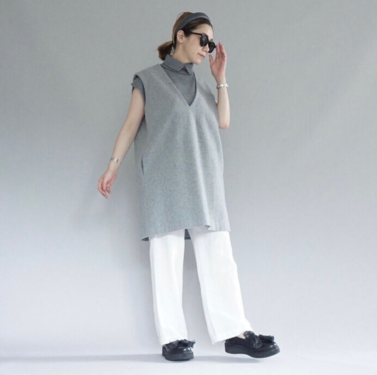 両サイドポケット付き。腰回りを隠せるオーバーサイズでゆったりとしています。膝上丈で冬はタイツで中にシャツを着てミニワンピースのように着るのもお勧めです。またパンツやロングスカートを入れて着てもベストなバランスになります。体から離れるシルエットになるためボディラインが気になる方にもお勧めです。着脱は後ファスナーで脱ぎ着がしやすくしました。