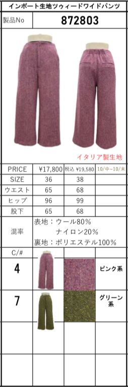 【 ayane 】インポート生地ツウィードワイドパンツ(872803)