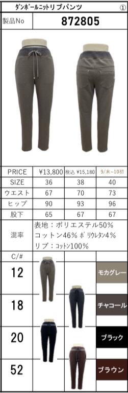 予約販売【 ayane 】ダンボールニットリブパンツ(872805)