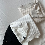 首周り、袖のリブは柔らかく、裏面はツルツルなので滑りよく着用いただけます