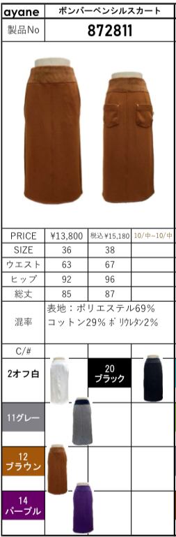 【 ayane 】ボンバーペンシルスカート(872811)