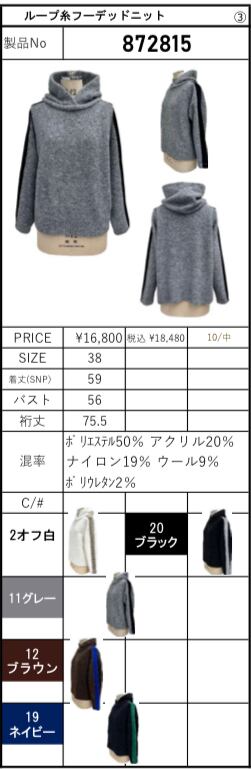 予約販売【 ayane 】ループ系フーデットニット(872815)