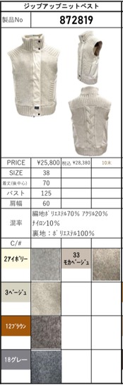 予約販売【 ayane 】ジップアップニットベスト(872819)