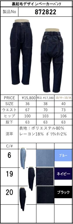 予約販売【 ayane 】裏起毛デザインベーカーパンツ(872822)