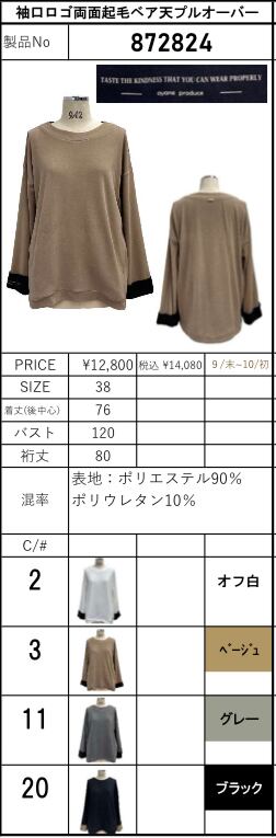 予約販売【 ayane 】袖口ロゴ両面起毛ベア天プルオーバー(872824)