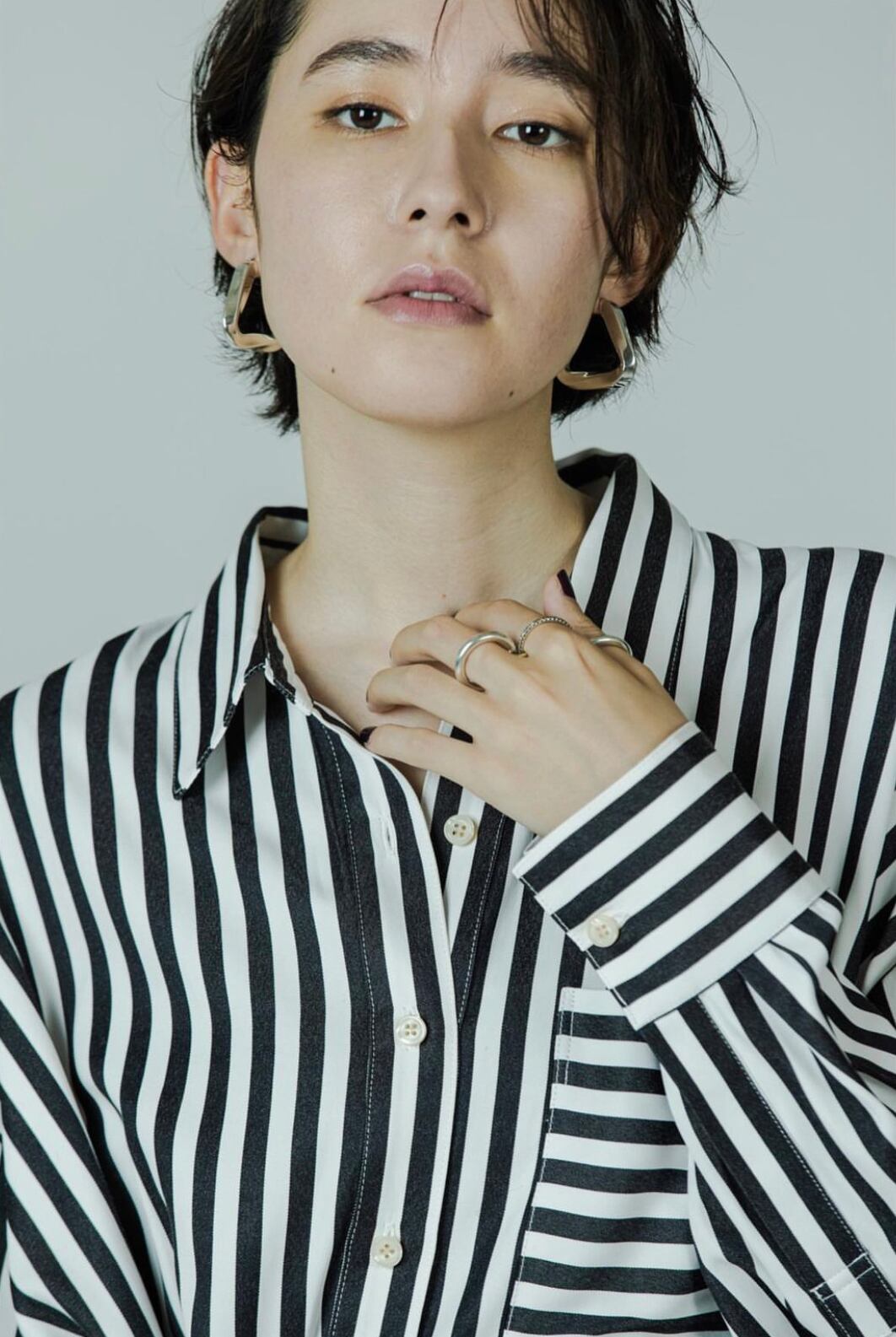 ベーシックなシャツとしてももちろんですが、サイドのボタンや取り外し可能のベルトで留め位置をアレンジしてバリエーションが楽しめる変形デザインシャツになります。