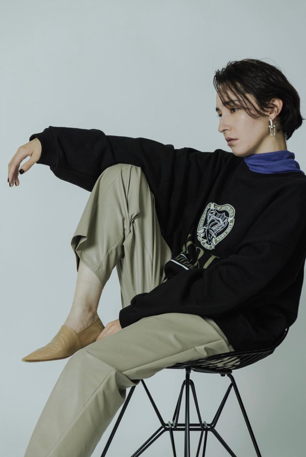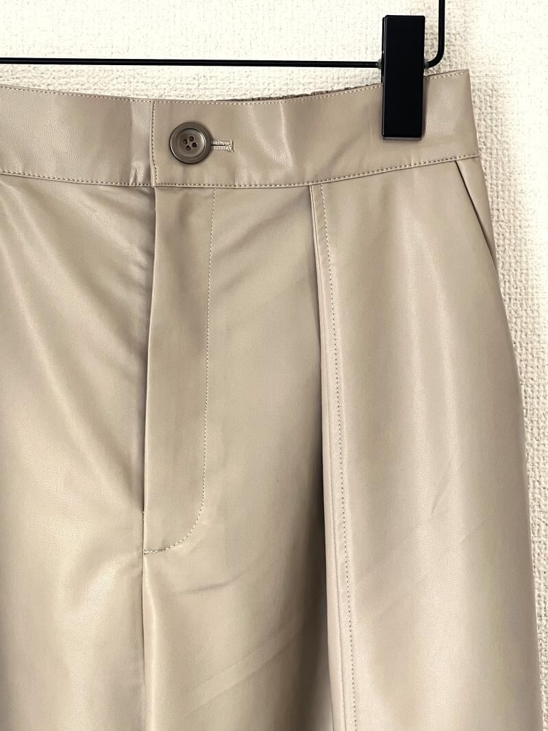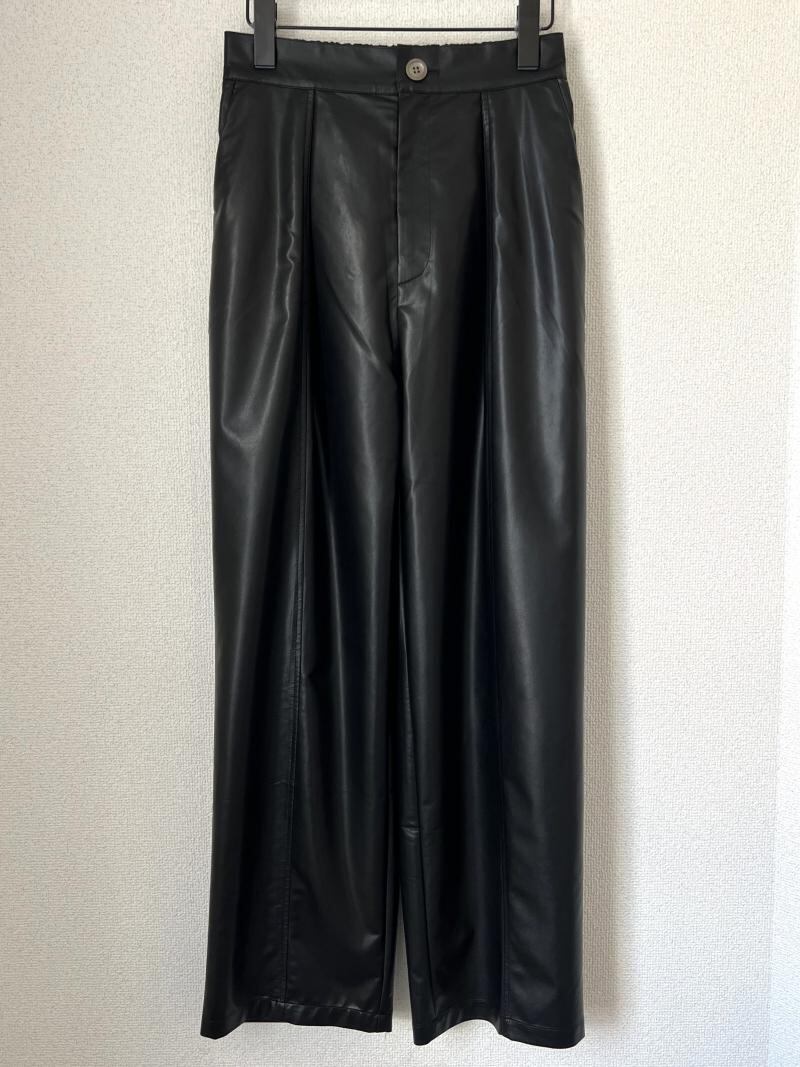 前タックをいれたワイドなシルエットでありながら、柔らかな合皮素材とフロントの切替で大人っぽい印象のパンツに仕上がりました。