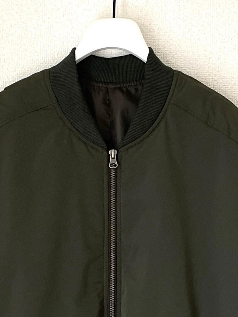 カジュアルすぎないポリエルテルの目のきれいなツイル生地を使用したMA-1ベストです。