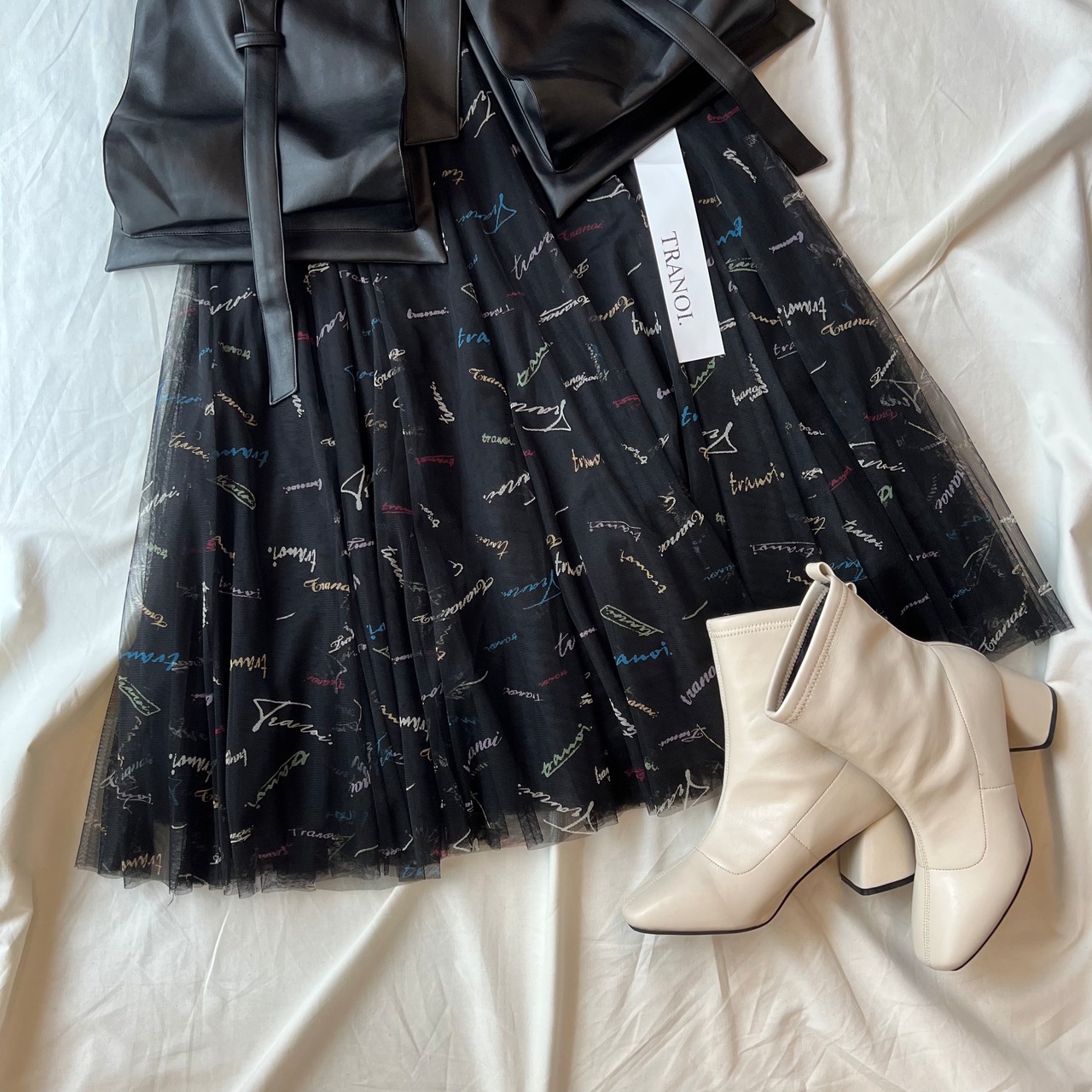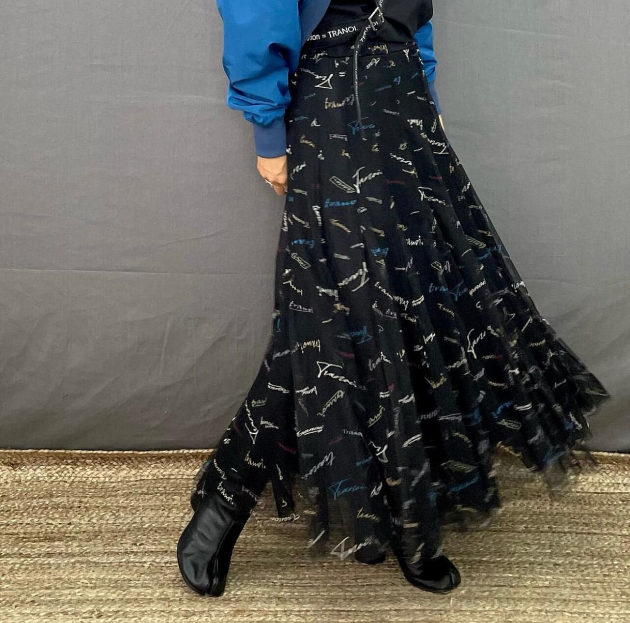 トラノイ定番チュールスカートにtraoiオリジナルロゴプリントが登場です♡無数のtranoi♡♡