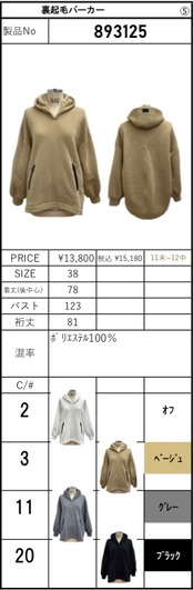 予約販売【 ayane 】裏起毛パーカー(893125)