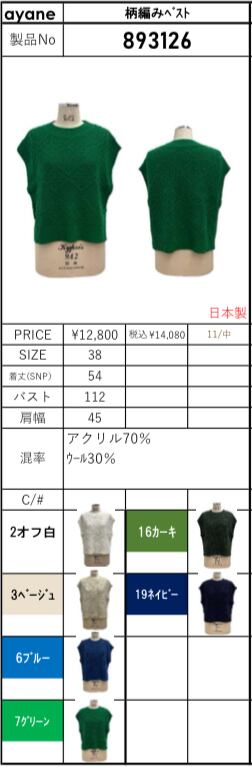 予約販売【 ayane 】柄編みベスト(893126)