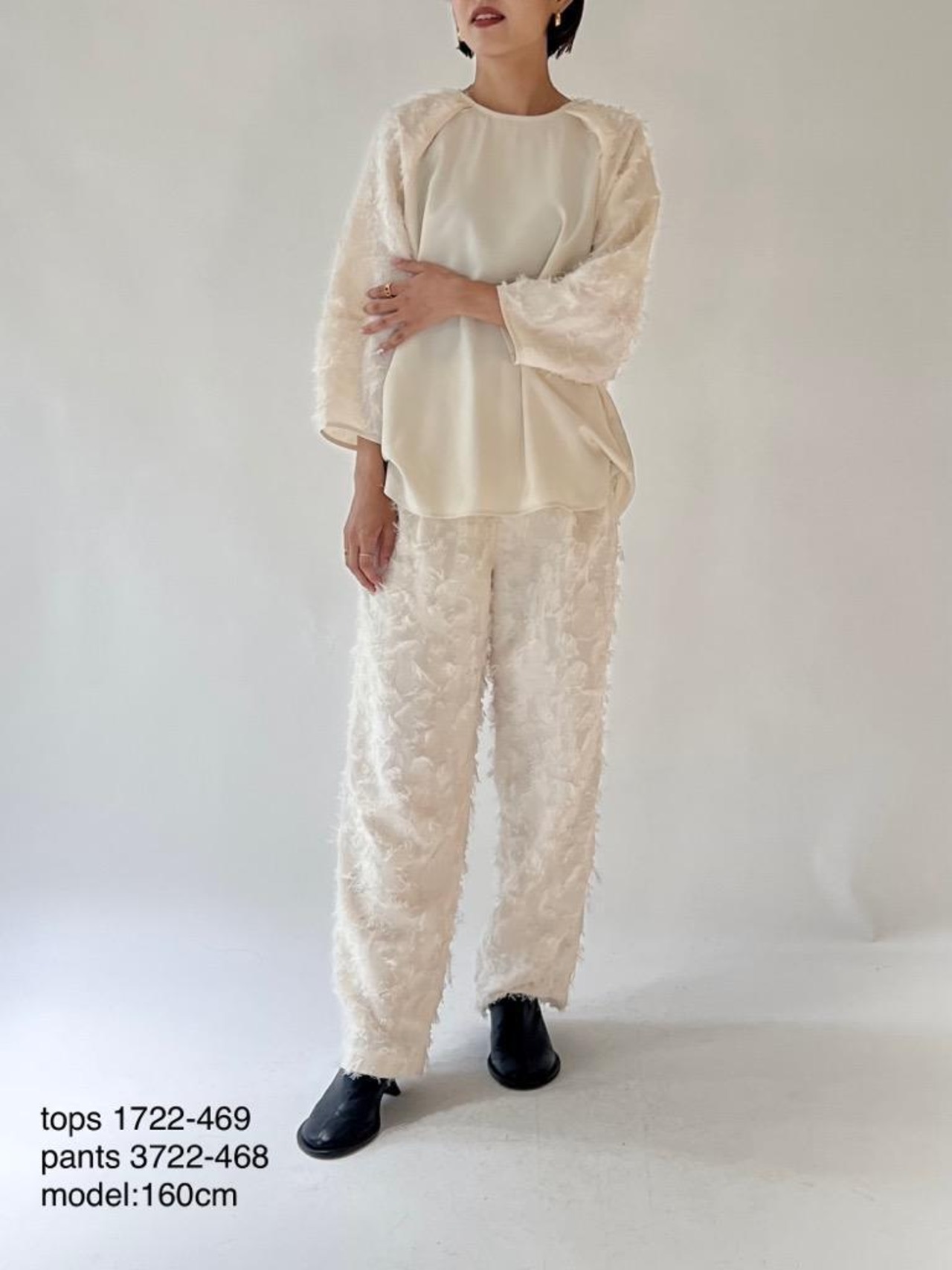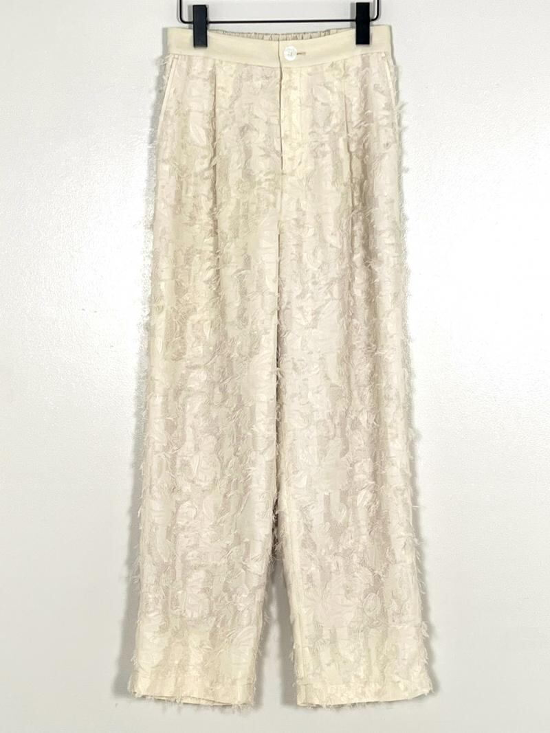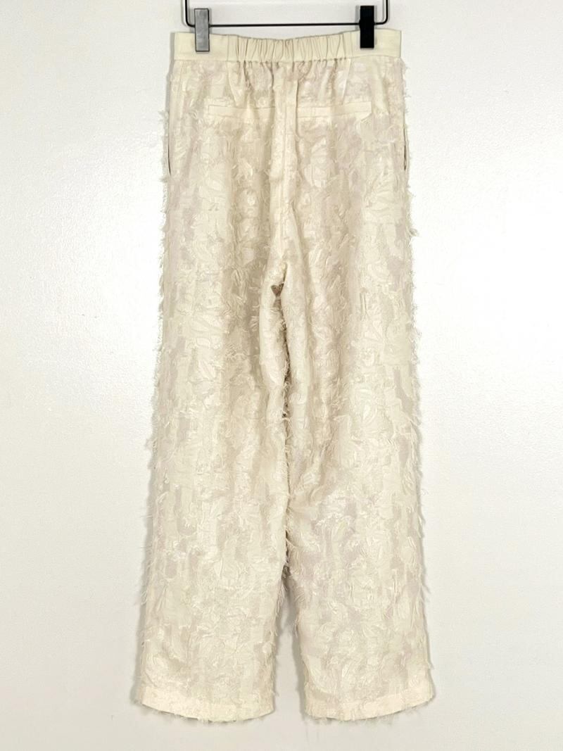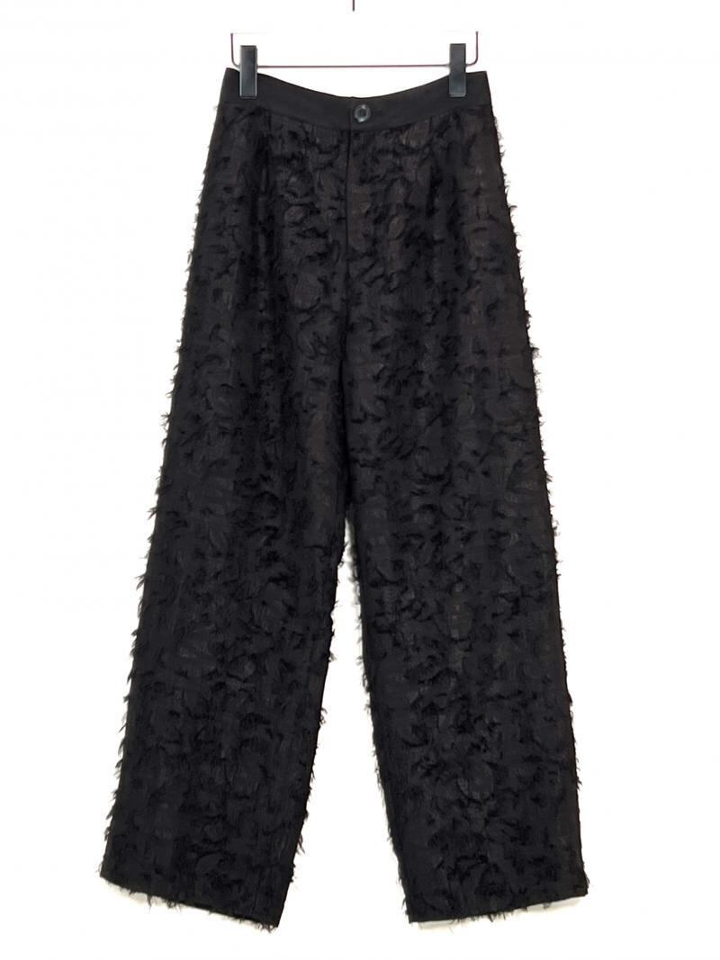 毛足のある、ジャガード素材が可愛いストレートパンツです。