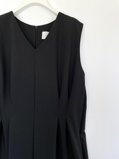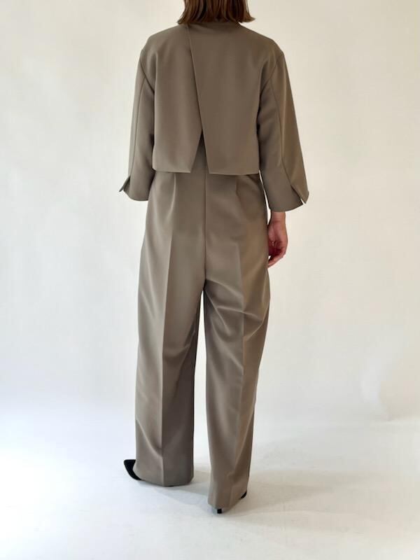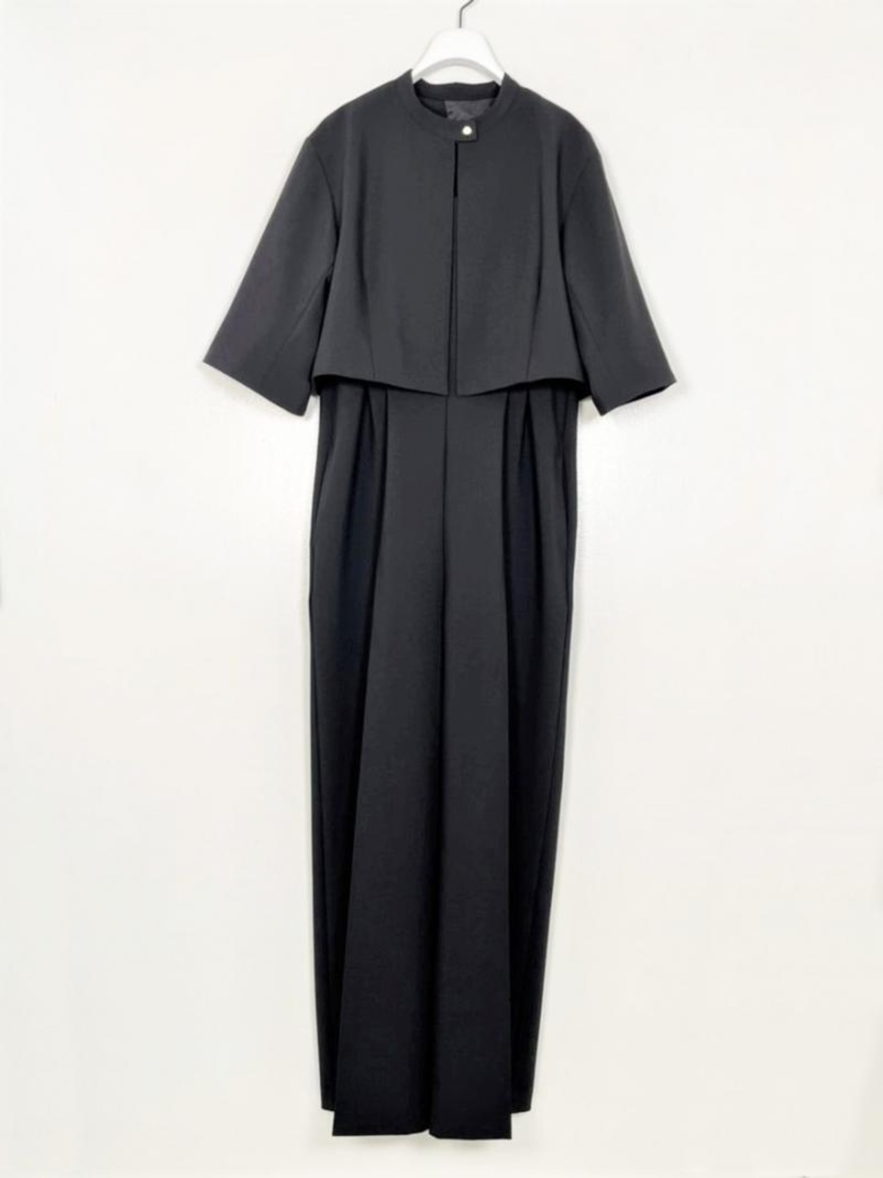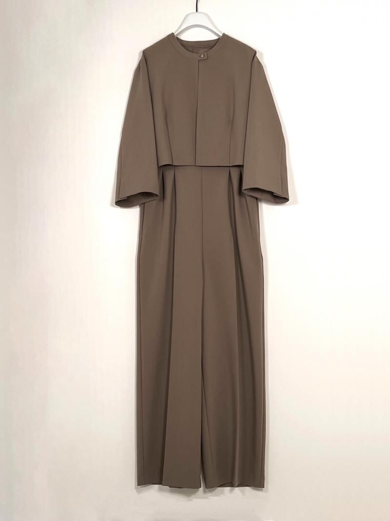 ウエストダーツを入れシャープな印象に仕上げたVネックラインのコンビネゾンをレイヤードして着用します。