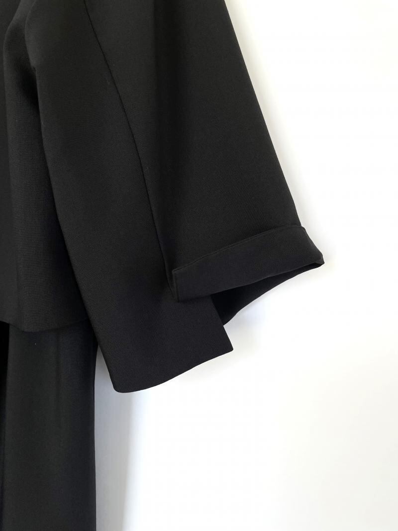 大胆なカットラインを入れた後ろのデザインがポイントのジャケットに