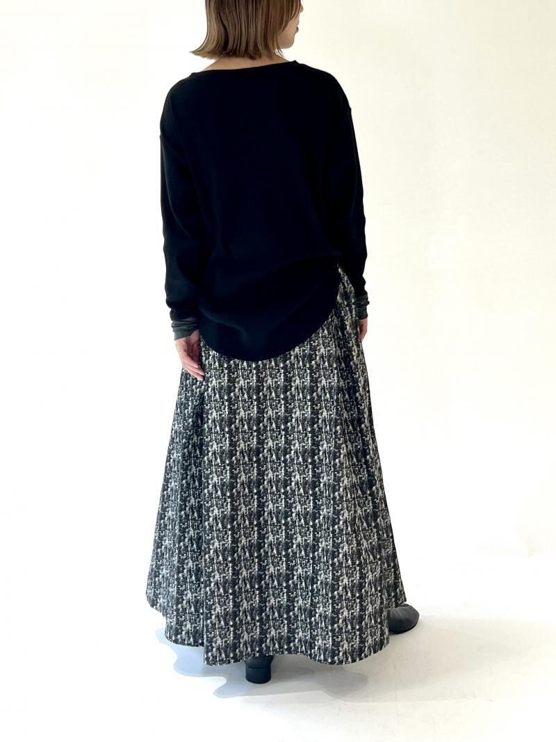 ウエスト部分にタックを施し、フレアながらも広がりすぎない