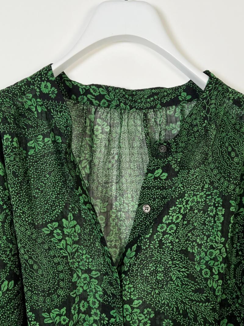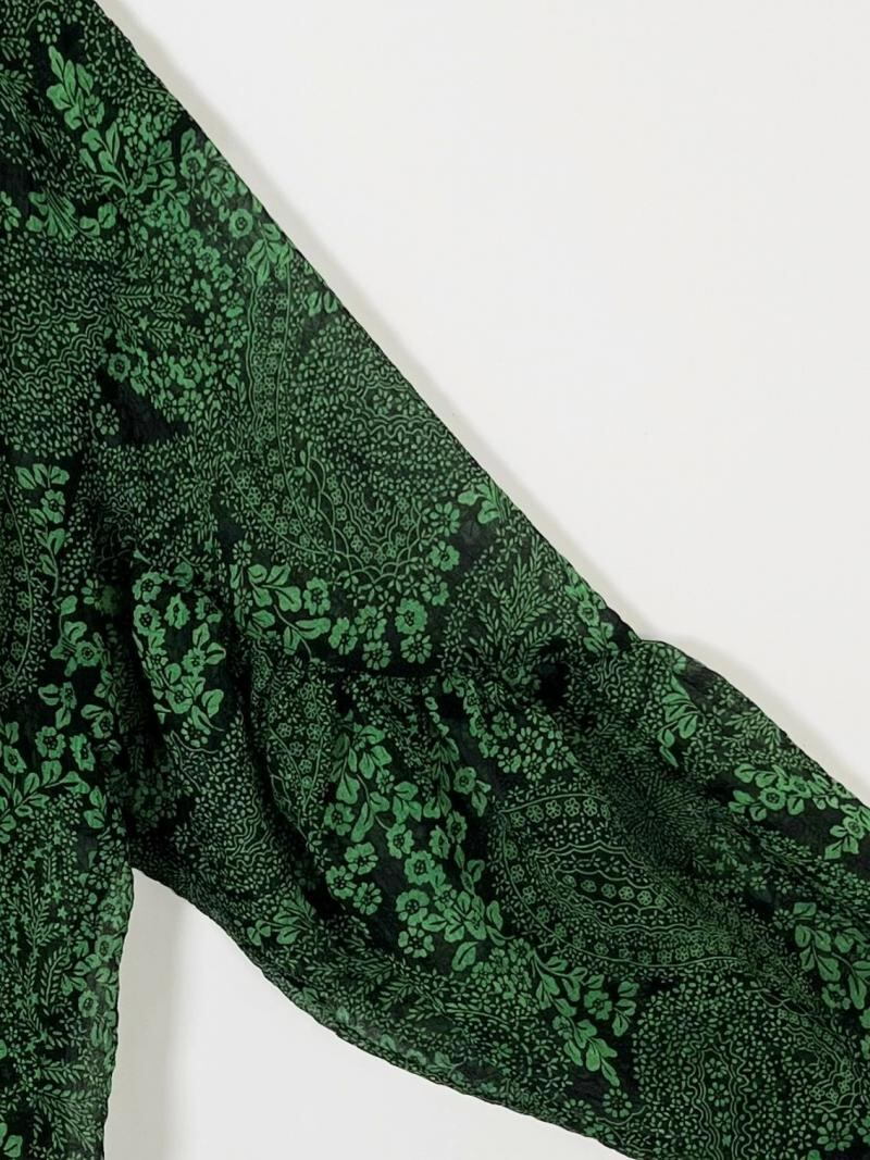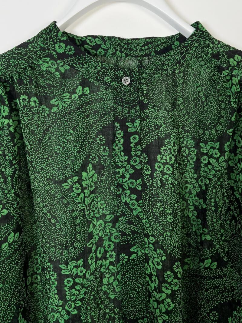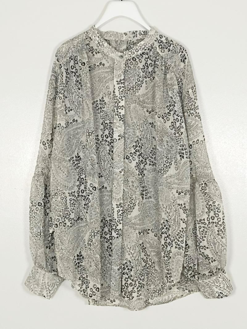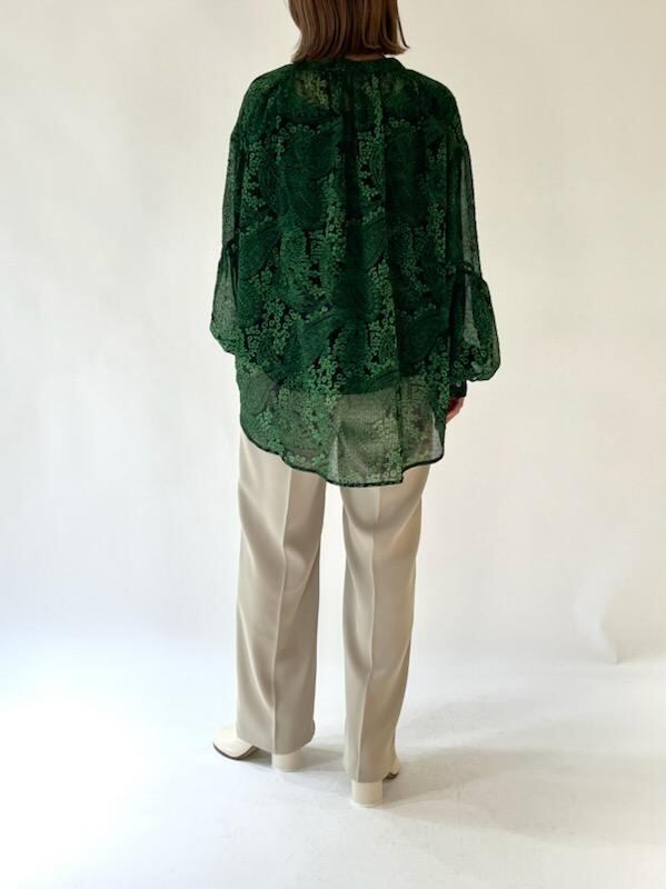 シアー感のある軽い素材を使用した、フラワーベースのペイズリー柄ブラウスです。